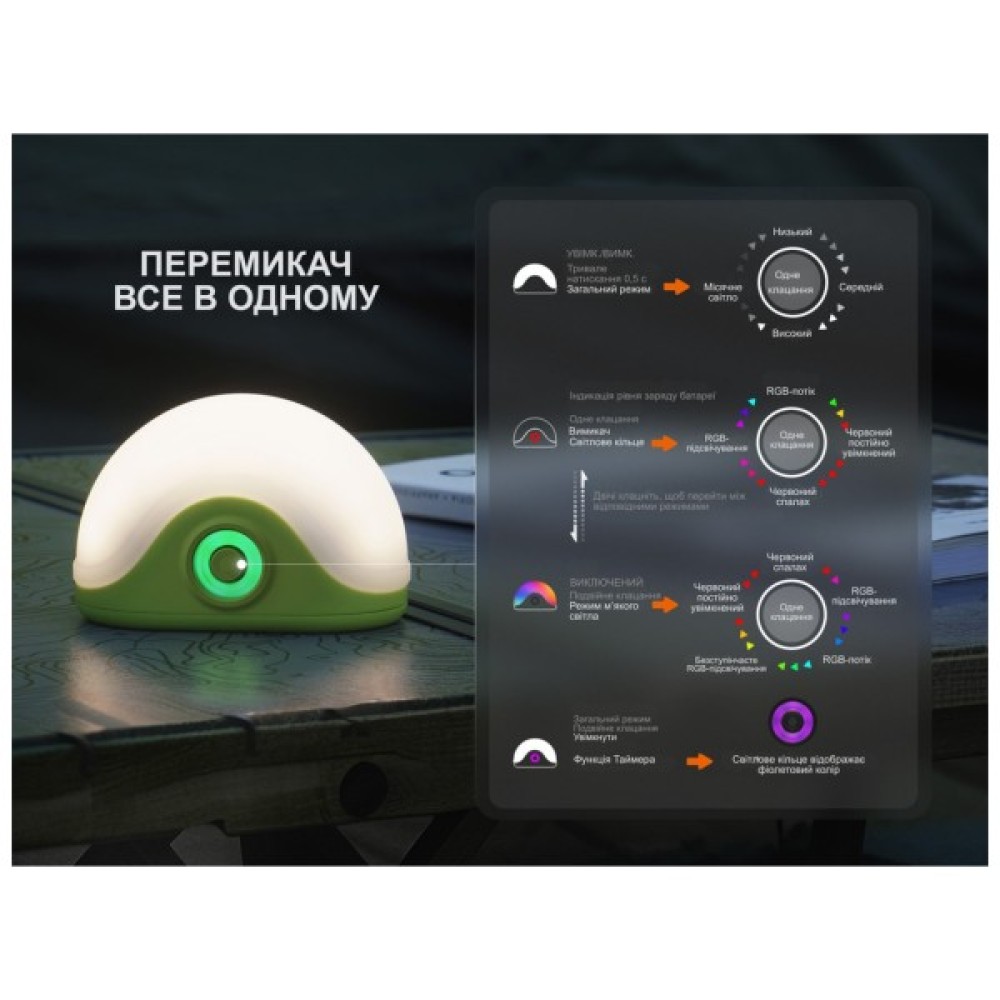 Однією з головних особливостей Fenix CL20R V.2.0 є вражаюча яскравість у 300 люменів, що забезпечують якісне освітлення на відстань до 12 метрів. Джерелом світла служать 27 SMD світлодіодів 2835 та 24 RGB-діоди 2020, що гарантує стабільну роботу ліхтаря до 50000 годин. Для різноманітності освітлення передбачено 13 режимів, включаючи "місячне сяйво", червоне світло, а також режим RGB для барвистих світлових ефектів, що додадуть особливого настрою вашим вечіркам на природі.
