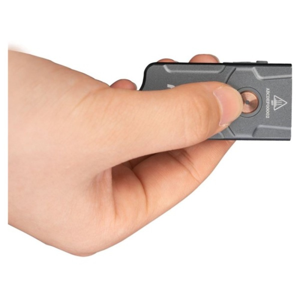Кріплення до ключів чи на ремінь рюкзака полегшує використання у повсякденних ситуаціях. Вага конструкції становить лише 30 грамів, що робить його ідеальним вибором для тих, хто прагне мінімалізму та зручності. Завдяки міцній конструкції з анодованого алюмінію, цей ліхтар-брелок стає стійким до подряпин та зовнішніх впливів. Довжина корпусу становить 52.5 міліметра, що робить його компактним і нерозумимим у кишені чи сумці.