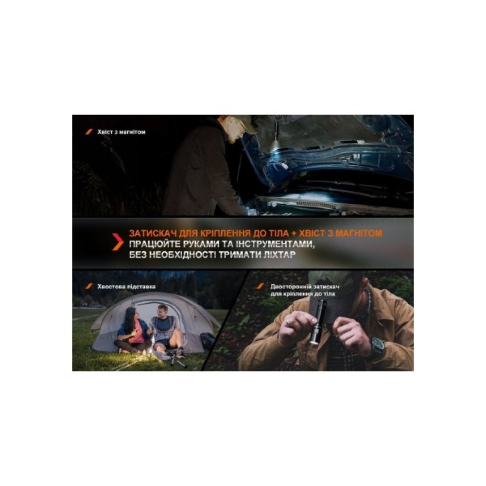 Компактність та легкість (вага всього 128 г) роблять Fenix E28R V2.0 ідеальним вибором для носіння як у рюкзаку, так і у дамській сумочці. Універсальна знімна кліпса дає можливість закріпити ліхтар на поясі або кишені, забезпечуючи швидкий доступ до джерела світла в будь-який момент.