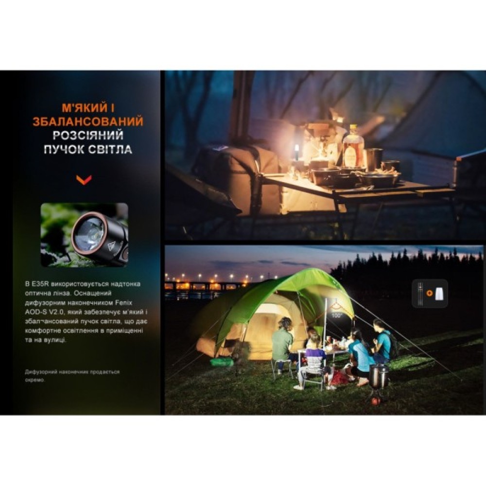 Завдяки своїм характеристикам, Fenix E35R підходить для використання в різних умовах, чи то на риболовлі, у поході або ж у повсякденному житті. Цей ліхтар стане вашим надійним супутником, забезпечуючи високу якість освітлення у будь-якій ситуації.