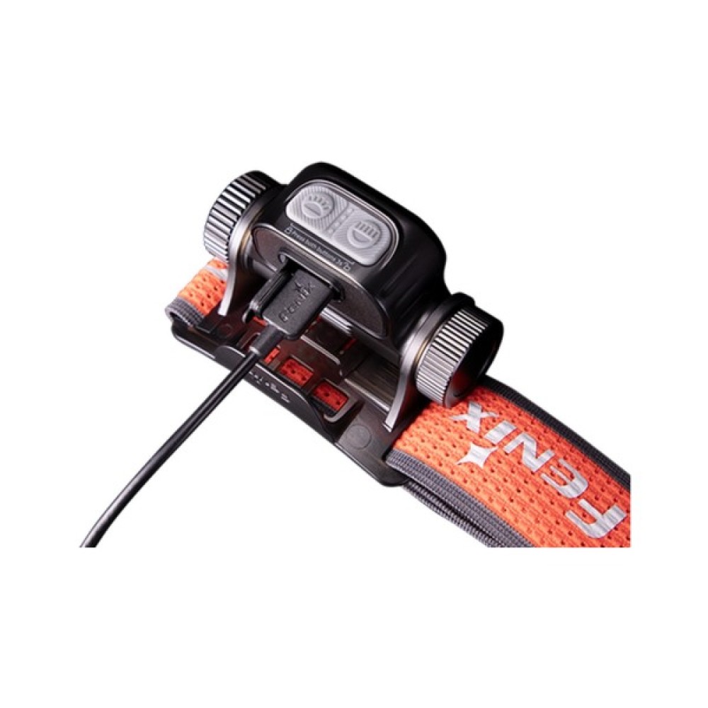Fenix HM65R-T V2.0 підтримує роботу як від акумулятора 18650, так і від батарейок CR123A. Зарядка здійснюється через порт USB Type-C всього за 3 години, не виймаючи акумулятор. Це робить ліхтар зручним у використанні навіть у польових умовах.