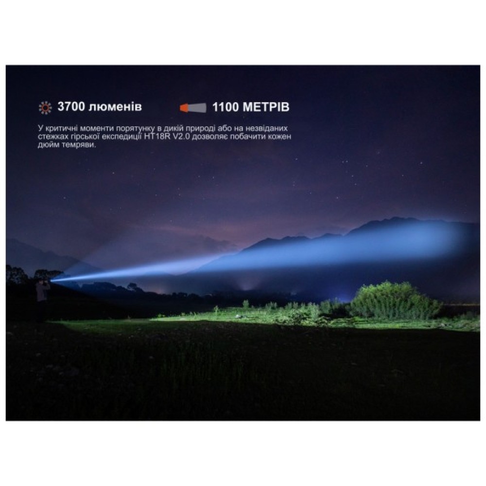 Ліхтар Fenix HT18R v2.0 — це неперевершений зразок ручного освітлювального пристрою, створений для надзвичайних ситуацій, де максимальна дальність і контрастність світлового променя грають ключову роль. Яскравість в 3700 люменів дозволяє освітлювати діапазон до 1100 метрів, що робить цей ліхтар ідеальним для пошуково-рятувальних операцій, полювання, патрулювання і навіть індустріальних робіт за умов низької видимості.