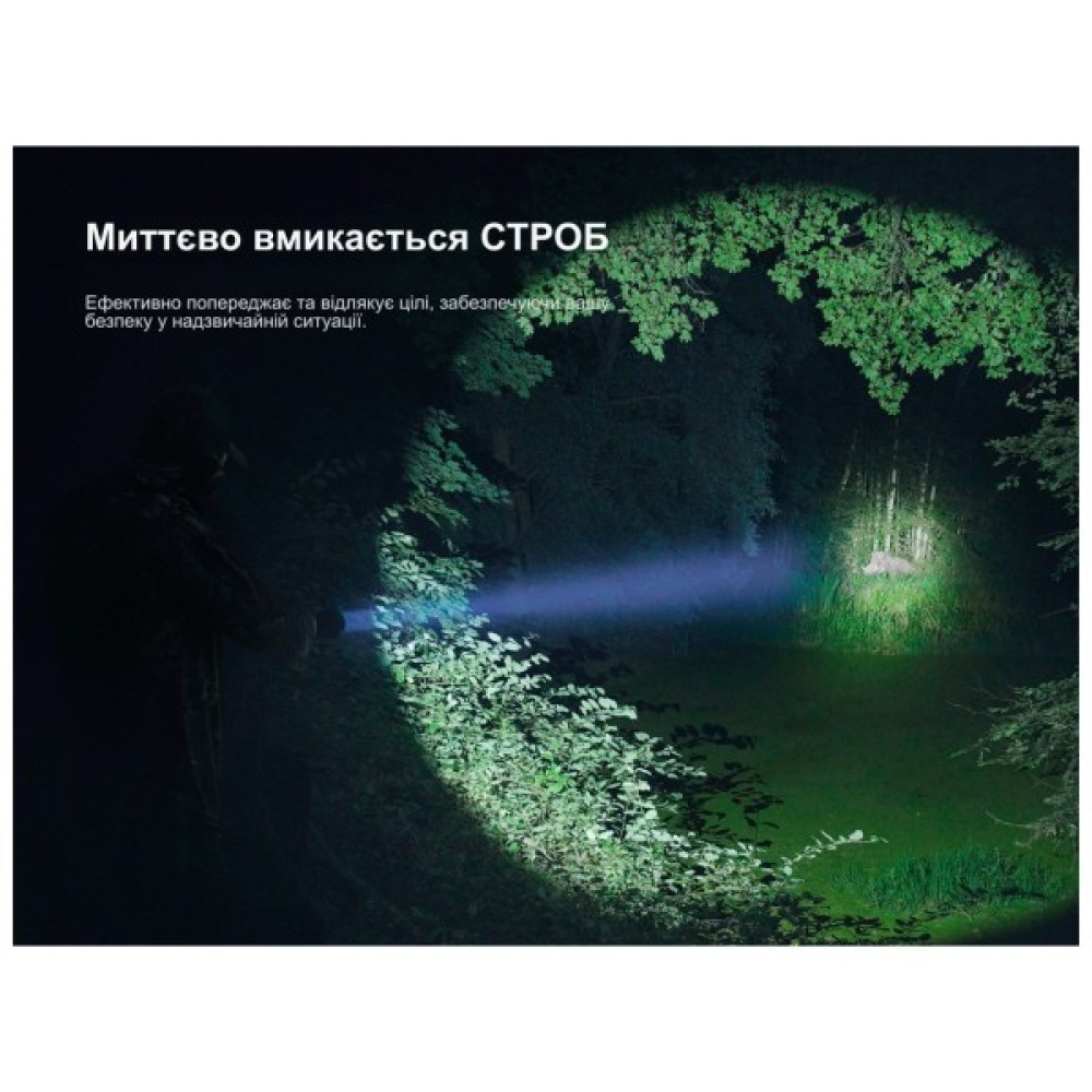 Важливою особливістю є подвійний перемикач, який дозволяє миттєво активувати режими Спалах або Стробоскоп. На додачу, функція електронного блокування запобігає випадковому ввімкненню, що є надзвичайно корисним під час транспортування.