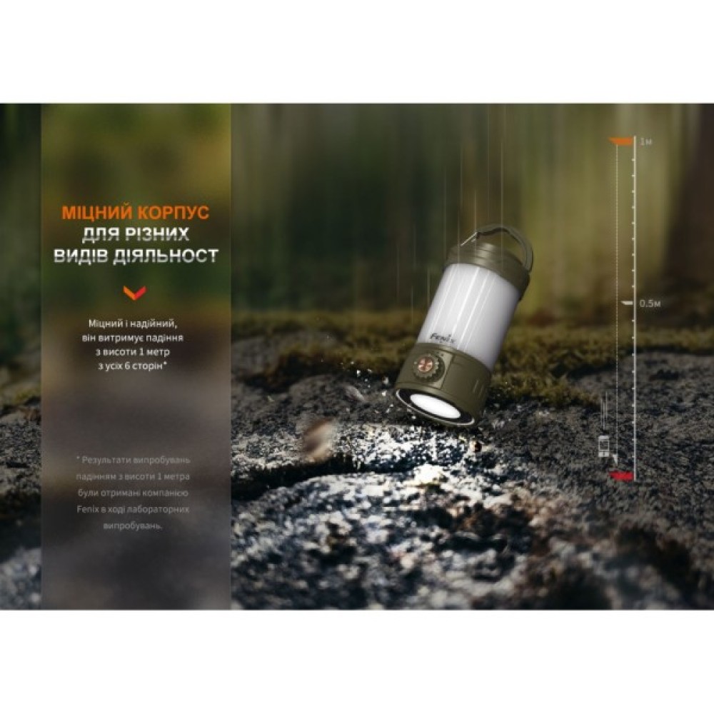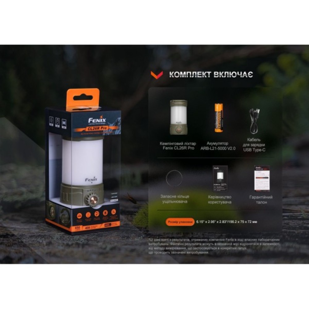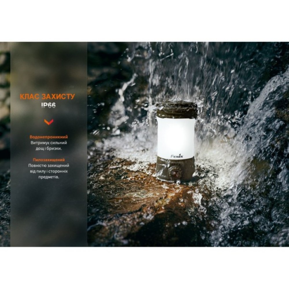 Корпус виготовлено з ударостійкого пластику, що гарантує довговічність та здатність витримувати падіння з висоти до одного метра. Крім цього, клас захисту IP66 свідчить про пиловідштовхувальні та вологонепроникні властивості, завдяки чому Fenix CL26R Pro надійно працює в будь-яких погодних умовах.
