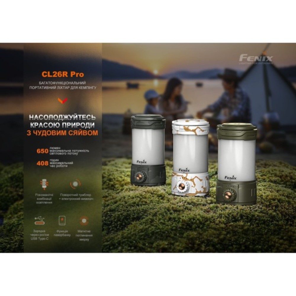 Сучасний дизайн разом із високою продуктивністю роблять Fenix CL26R Pro досконалим вибором для тих, хто цінує якість, функціональність й інновації в одному продуктивному пристрої. Це ідеальне рішення як для використання вдома, так і для пригод на природі, що відповідає найвищим стандартам якості та надійності.