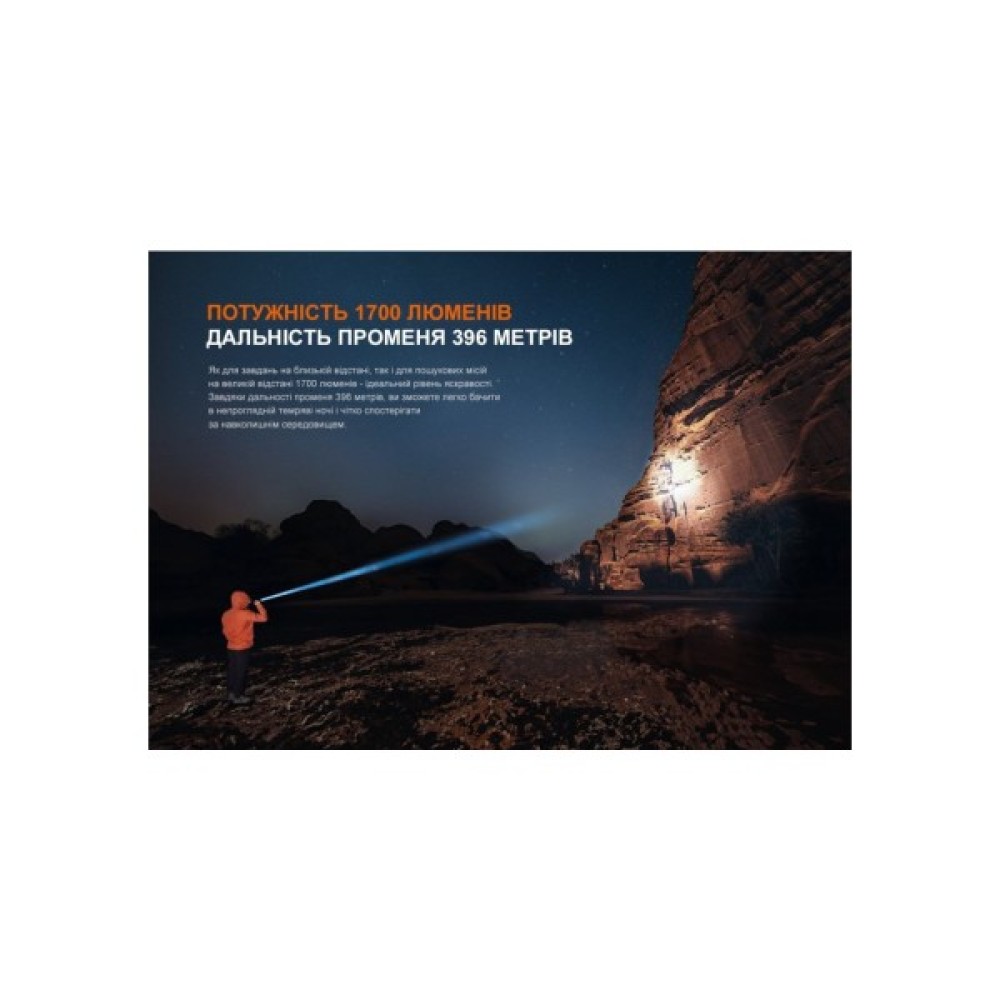 Яскравість PD36R V2.0 досягає вражаючих 1700 люменів, що робить його одним з найпотужніших у своєму класі. Він може освітлювати простір на відстань до 396 метрів, дозволяючи безперешкодно спостерігати за об'єктами на великих відстанях. Завдяки світлодіоду Luminus SFT40 та гладкому рефлектору, ви отримаєте насичене освітлення з яскраво вираженою центральною плямою і мінімальним бічним засвічуванням, що чудово підходить для фокусованого освітлення.