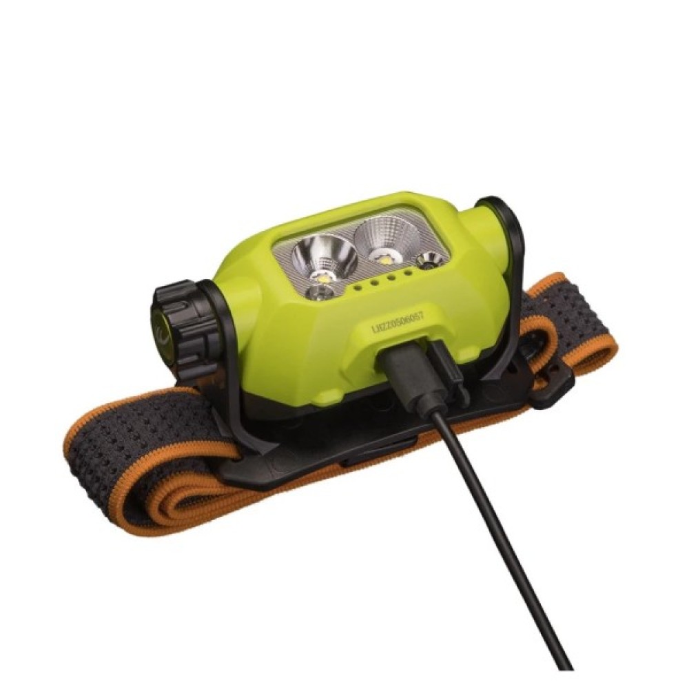 Цей налобник функціонує на двох світлодіодах Lumileds, відомих своєю тривалістю експлуатації до 50 тисяч годин. Він живиться від вбудованого акумулятора Li-Ion ємністю 2000 мАг, який заряджається за допомогою зручного порта USB Type-C усього за 1,5 години. Стан заряду завжди під контролем завдяки чотирьом світлодіодним індикаторам, які відображають рівень заряду батареї.