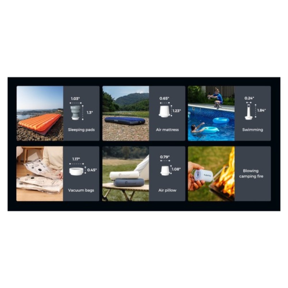 Основною технологічною родзинкою є AIR VORTECH™, яка забезпечує потужну продуктивність: робочий тиск до 4 кПа та швидкість надування 180 літрів за хвилину. Завдяки цьому Flextail Tiny Pump 2X миттєво надуває різноманітні надувні вироби – від матраців до килимків. Ця функція, спільно з можливістю швидкого здування та вакуумування, робить пристрій ідеальним рішенням для оптимізації простору та зручного зберігання.