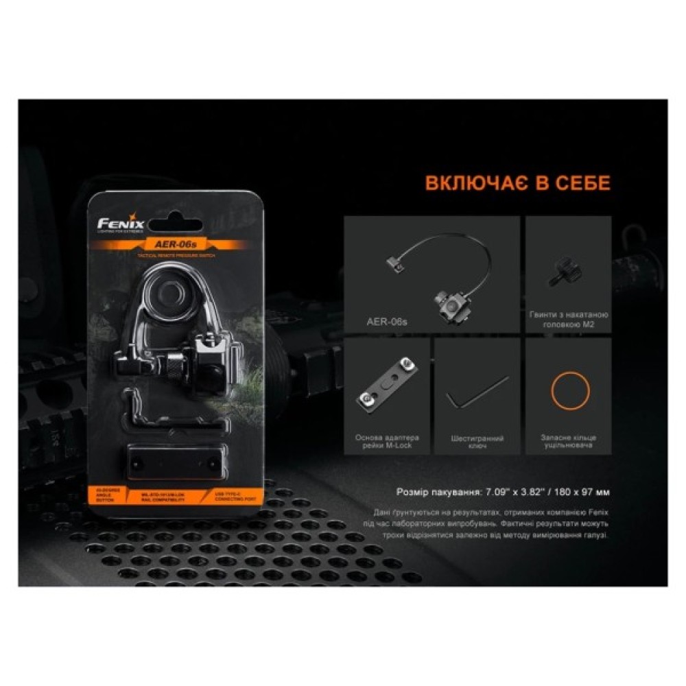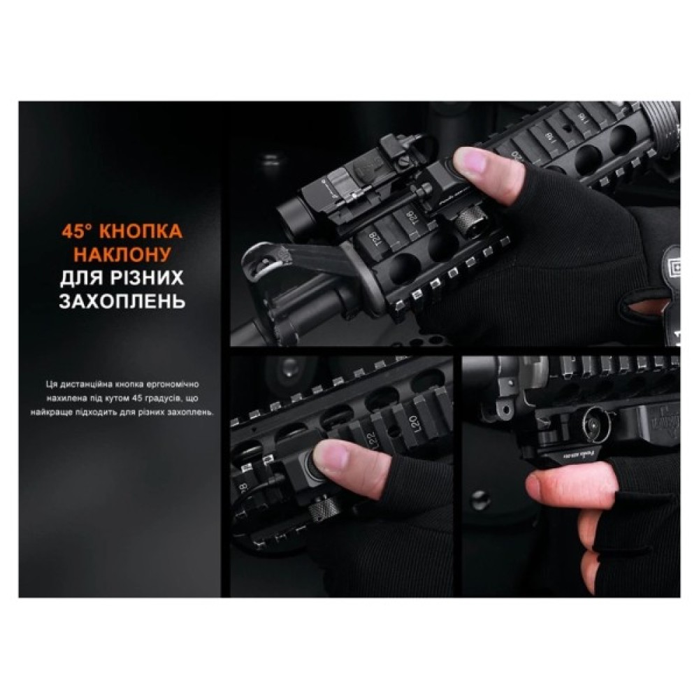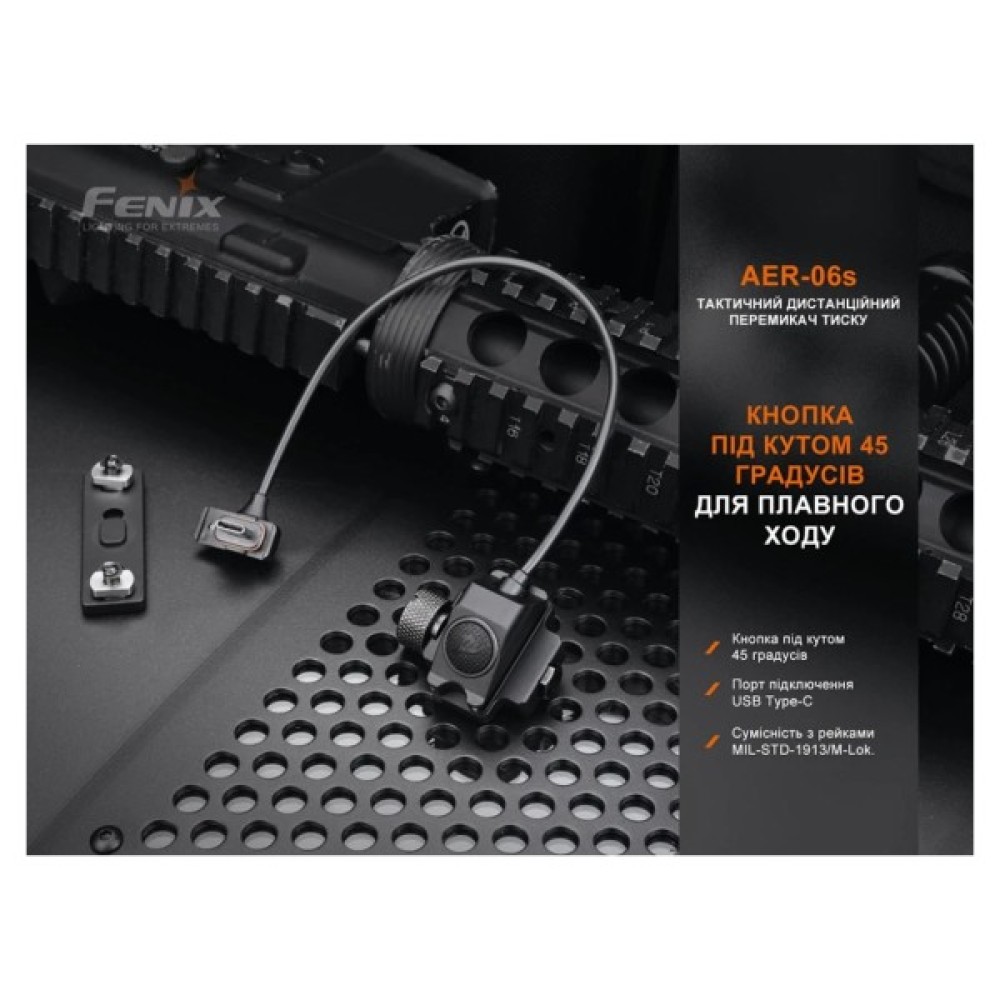 Тактичний перемикач Fenix AER-06s – це революційне рішення, яке полегшує керування ліхтарем, встановленим на короткоствольній зброї. Аксесуар сумісний з моделлю Fenix GL19R і дає користувачеві можливість миттєво активувати прилад та перемикати доступні режими освітлення, не випускаючи мети з прицілу.
