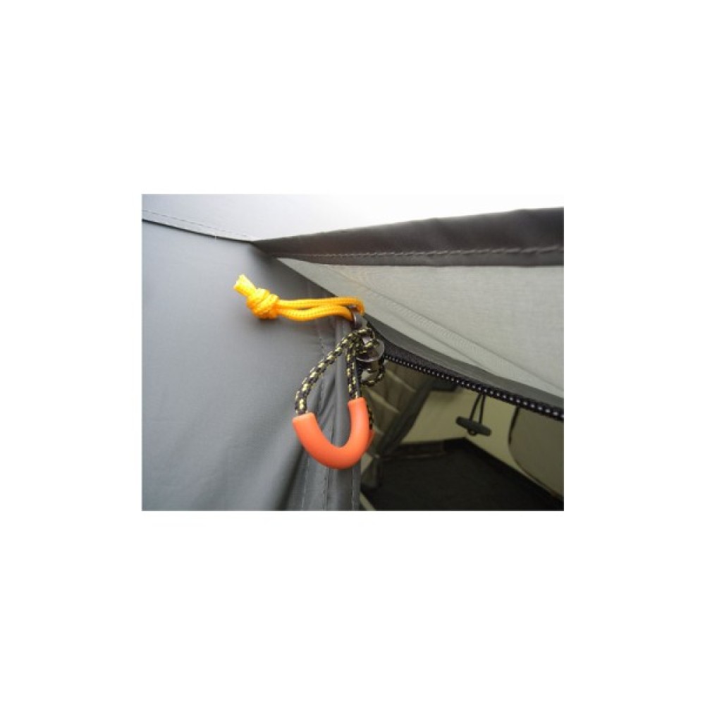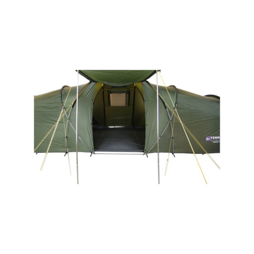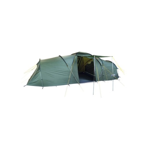Намет Terra Incognita Grand 8 khaki забезпечена вогнетривкої і водовідштовхувальним просоченням, а також має проклеєні шви. Корпус намети у вигляді напівбочки утримується за рахунок каркаса із 6-х склопластикових дуг. А зовнішній тент із міцного поліестеру вкриває два спальних приміщення і формує місткий тамбур, який ідеально підійде для розміщення багажу чи організації кемпінгової кухні. Для більшого затишку і комфорту можна пристебнути додатковий підлога в тамбурі (входить в комплект). Варто відзначити, що конструкція намету дозволяє використовувати тент без спального приміщення. Купіть намет Terra Incognita Grand 8 khaki за нашою доступною ціною і вона стане ідеальним житлом під час відпочинку або пікніка.