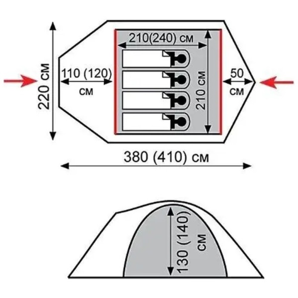 - входи внутрішнього намета продубльовані антимоскітною сіткою