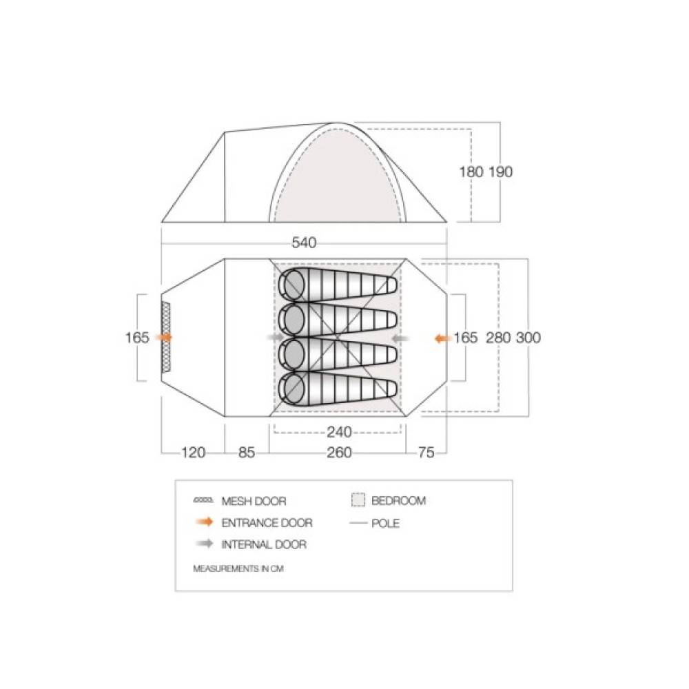 - Waterproof PE Groundsheet - Підлога з міцної тканини, яка витримає найактивніших туристів і створює чисте та сухе місце для зберігання взуття та похідного обладнання.
