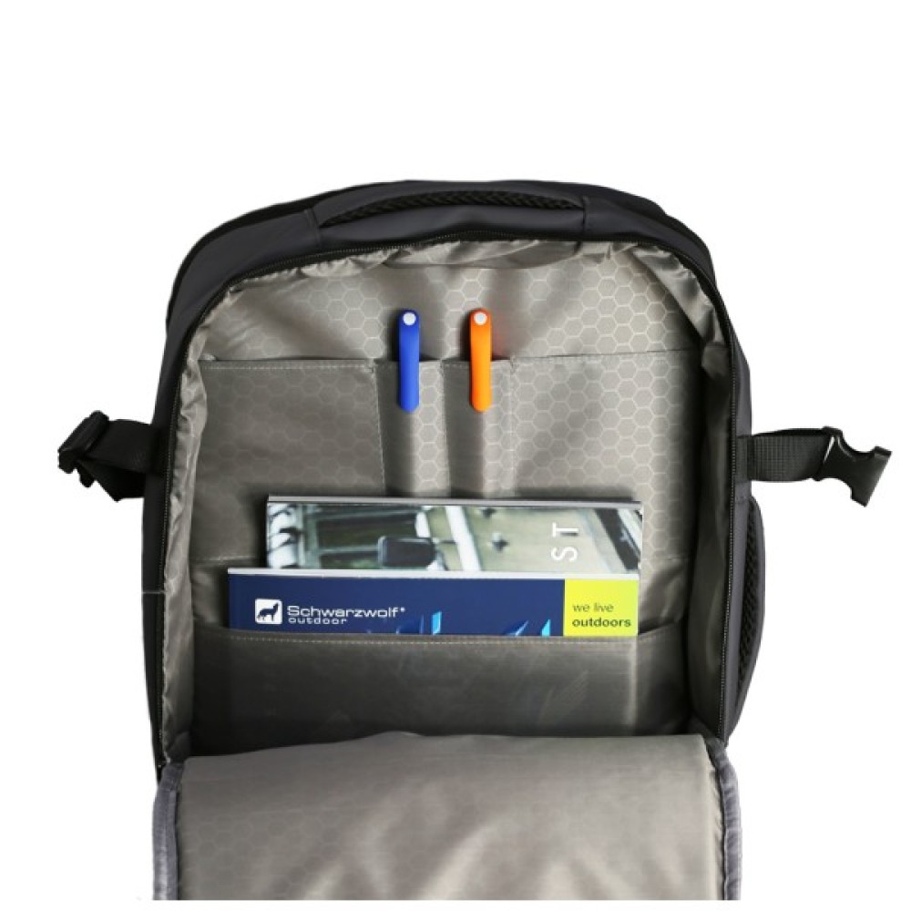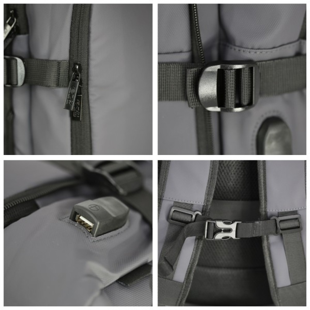 Рюкзак має продуману конструкцію: об’єм 20–30 л, що дозволяє замінити два рюкзаки меншого розміру. Три великі відділення забезпечують зручну організацію простору. Перше відділення має декілька внутрішніх кишень відкритого типу. Друге відділення призначене для одягу, який фіксується стрічками, є велика кишеня, куди можна покласти записник чи книгу. Зовнішні кишені на блискавках: зверху з вертикальною застібкою, знизу – з горизонтальною блискавкою, прикритою планкою.