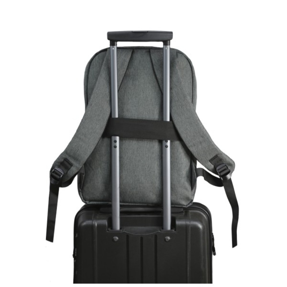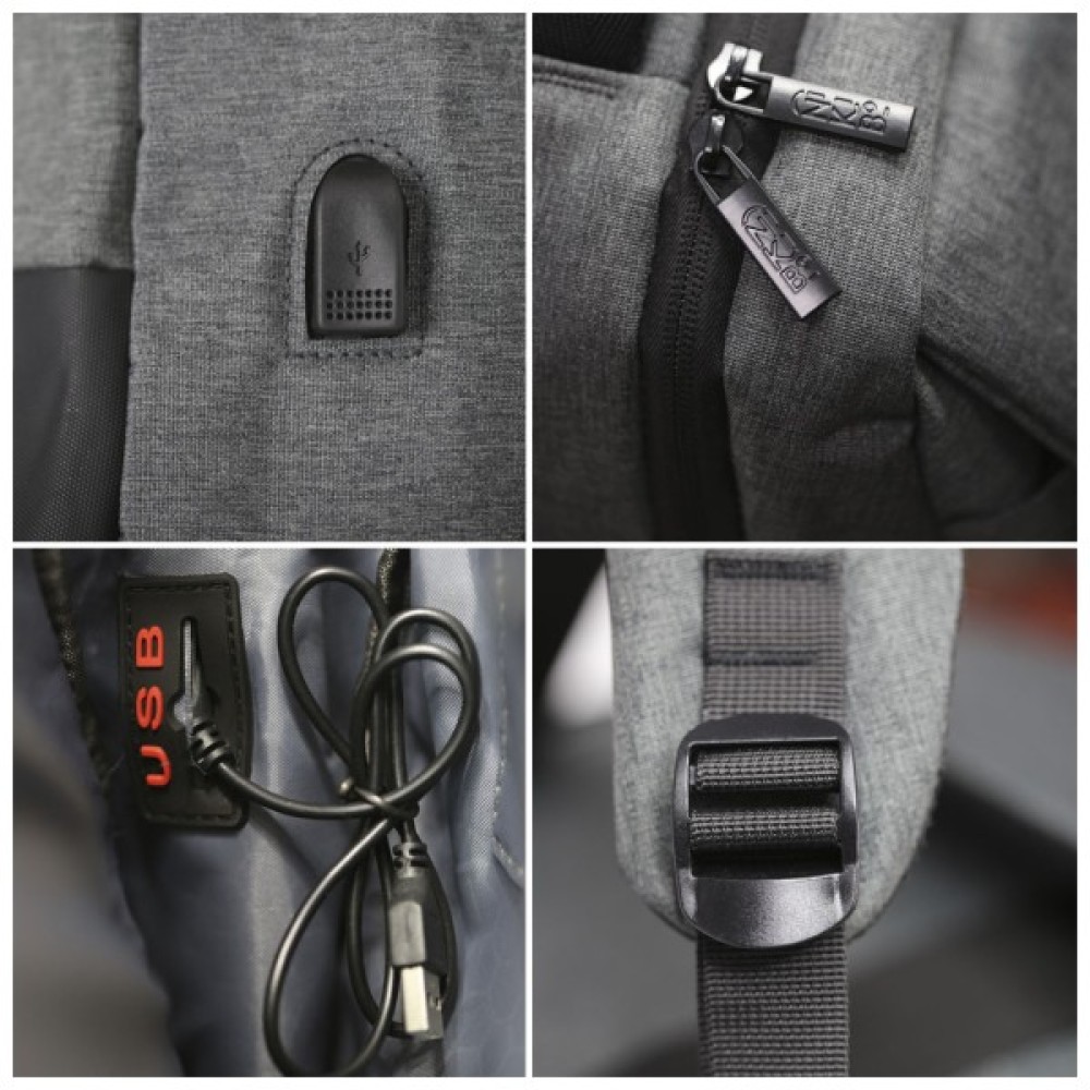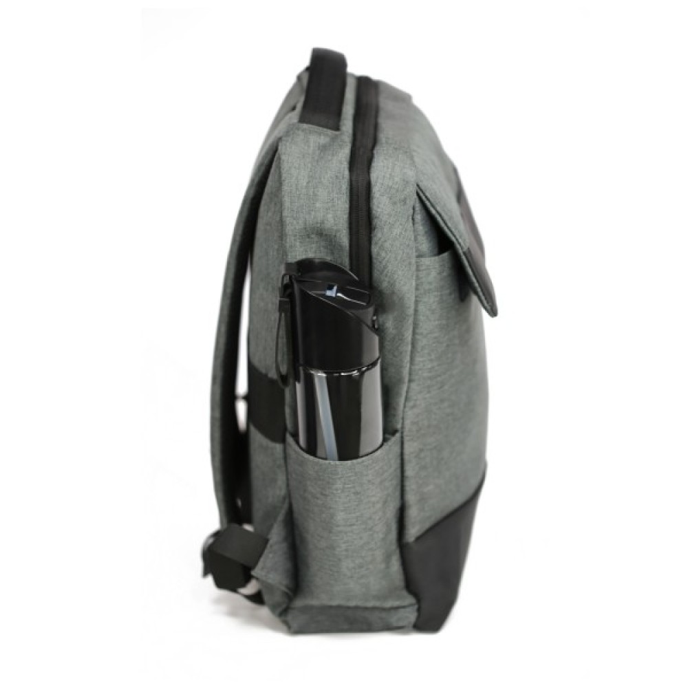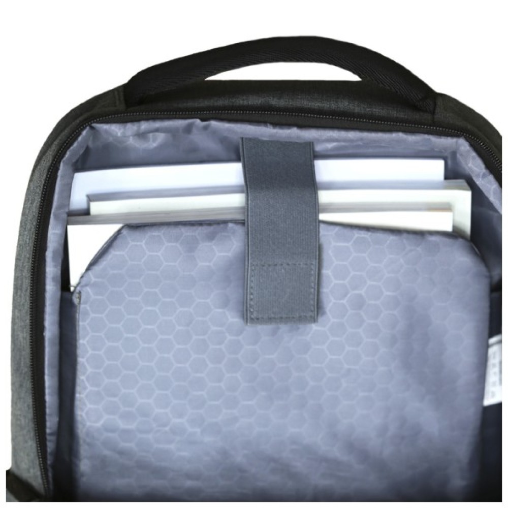Міський рюкзак відрізняється продуманою конструкцією: має одне велике відділення на блискавці з м’яким відсіком для ноутбука та кишенями для телефона й дрібниць. Спереду — містка кишеня з двома застібками (липучки та блискавка), прихованими під планкою. Збоку — кишеня для пляшки або парасолі.