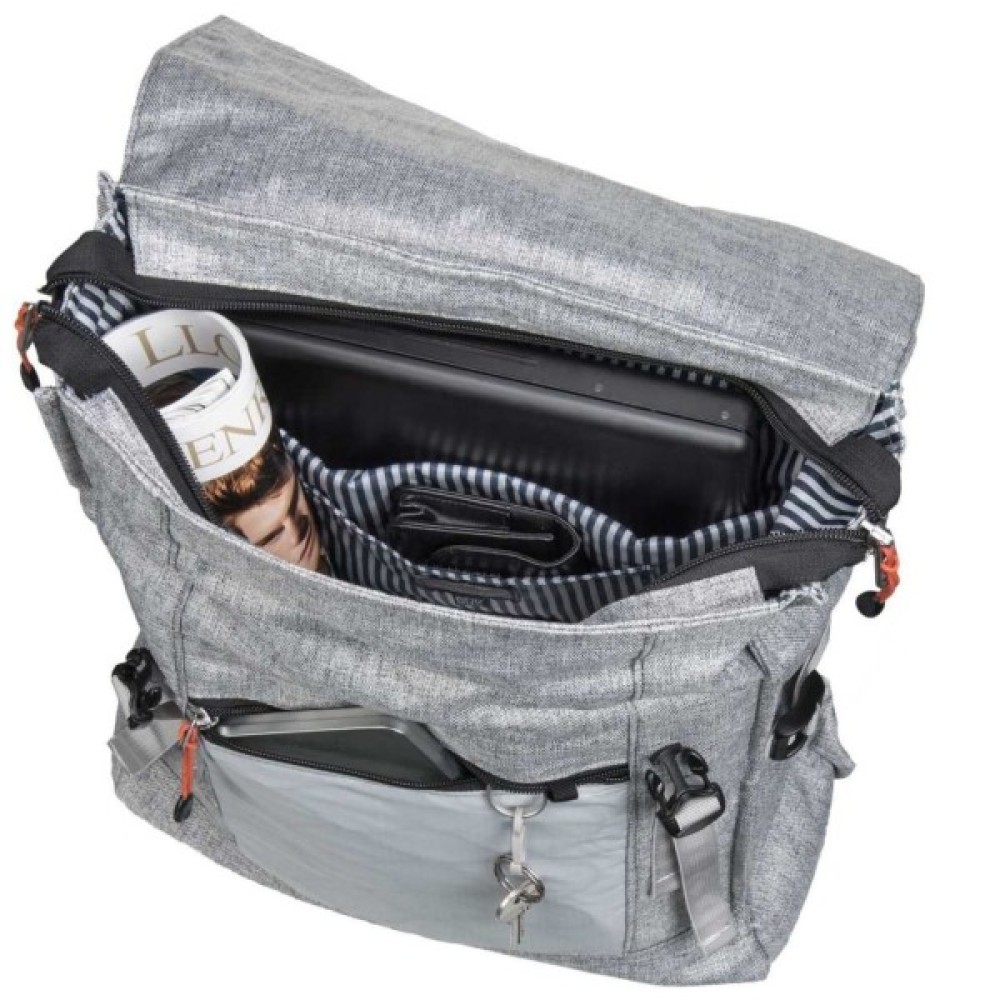 Наплічник має продуману конструкцію. Передня кишеня й основний відсік з кишенею для блокування RFID і відділенням для планшета або ноутбука мають блискавки. Для зручного перенесення рюкзак обладнаний верхньою ручкою. Також модель має регульовані лямки та пряжку для фіксації на нерухомих предметах.