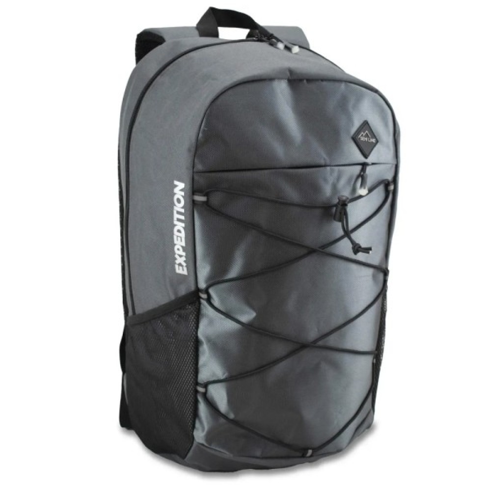 В глибоких бічних сітчастих кишенях можна розмістити ємність об'ємом до 1.5 л або більш дрібні речі, все це утримають від випадіння верхні еластичні стрічки кишень. Фасадна кишеня має блискавку довжиною 22 см, тож в неї за необхідності можна покласти не тільки документи, але й листи розміром до A4. Рюкзак виконаний з водостійкого Polyester PVC, тож ваші речі будуть надійно захищені від дощу. Анатомічна дихаюча спинка і м'які шлейки рівномірно розподіляють вагу рюкзака і дозволяють комфортно здійснювати тривалі піші прогулянки чи переходи. Світловідбиваючі елементи на шлейках і фасаді зроблять вас помітними в темний час доби.