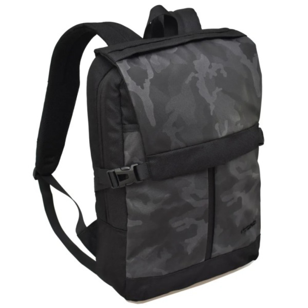 На відкидному клапані рюкзака знаходиться велика вологозахищена кишеня для зберігання речей першої необхідності, а на фасадній частині відсік, що відповідає розміру листів A4. Рюкзак обладнаний USB-виходом для підзарядки гаджетів на ходу. Для дрібних речей і канцелярського приладдя є зручний органайзер, а для платіжних карток - спеціальна внутрішня кишеня з RFID-захистом від зчитування інформації з банківських карток та мобільних пристроїв. З-поміж інших моделей, цей рюкзак вирізняє темний камуфляжний принт.