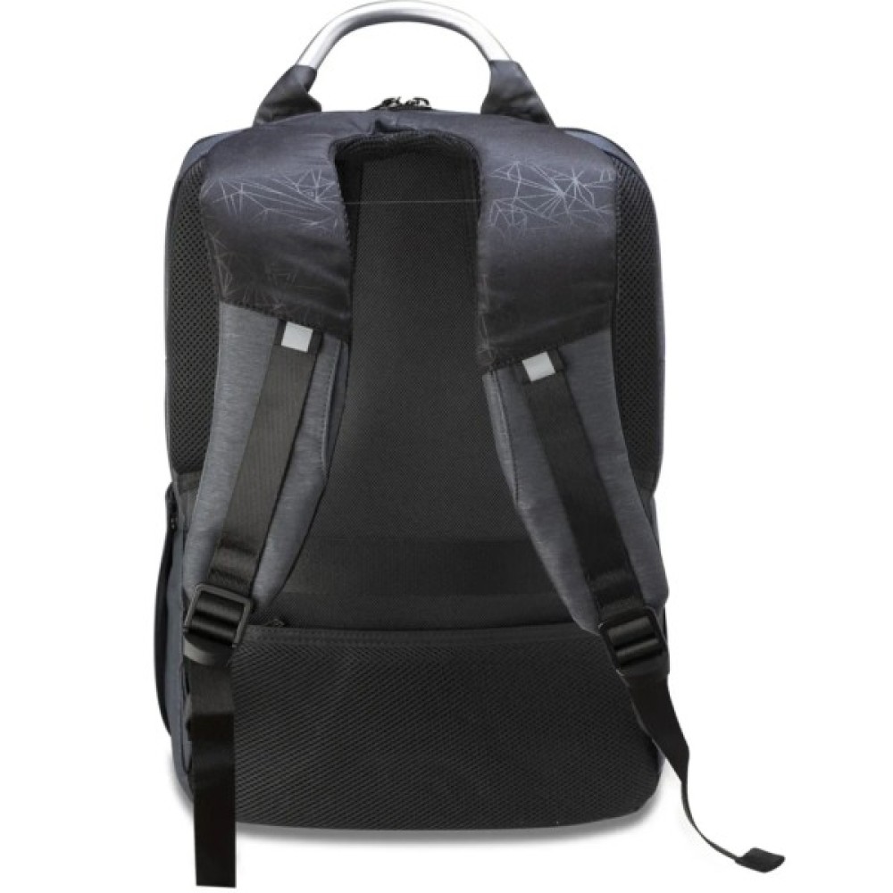 Основне відділення вміщує ноутбук діагоналлю до 15.6 дюймів, а також має окрему секцію для планшета та органайзери для аксесуарів. Передній відділ призначений для документів формату A4 та оснащений двома внутрішніми кишенями з підкладкою. На боках — дві кишені на кнопках, а на спинці — потайна кишеня на блискавці. Нижня частина оснащена гумовими ніжками для кращої стійкості та захисту дна. Верхня металева ручка додає елегантності та зручності в перенесенні. Задня частина має спеціальну стрічку для кріплення рюкзака до валізи.