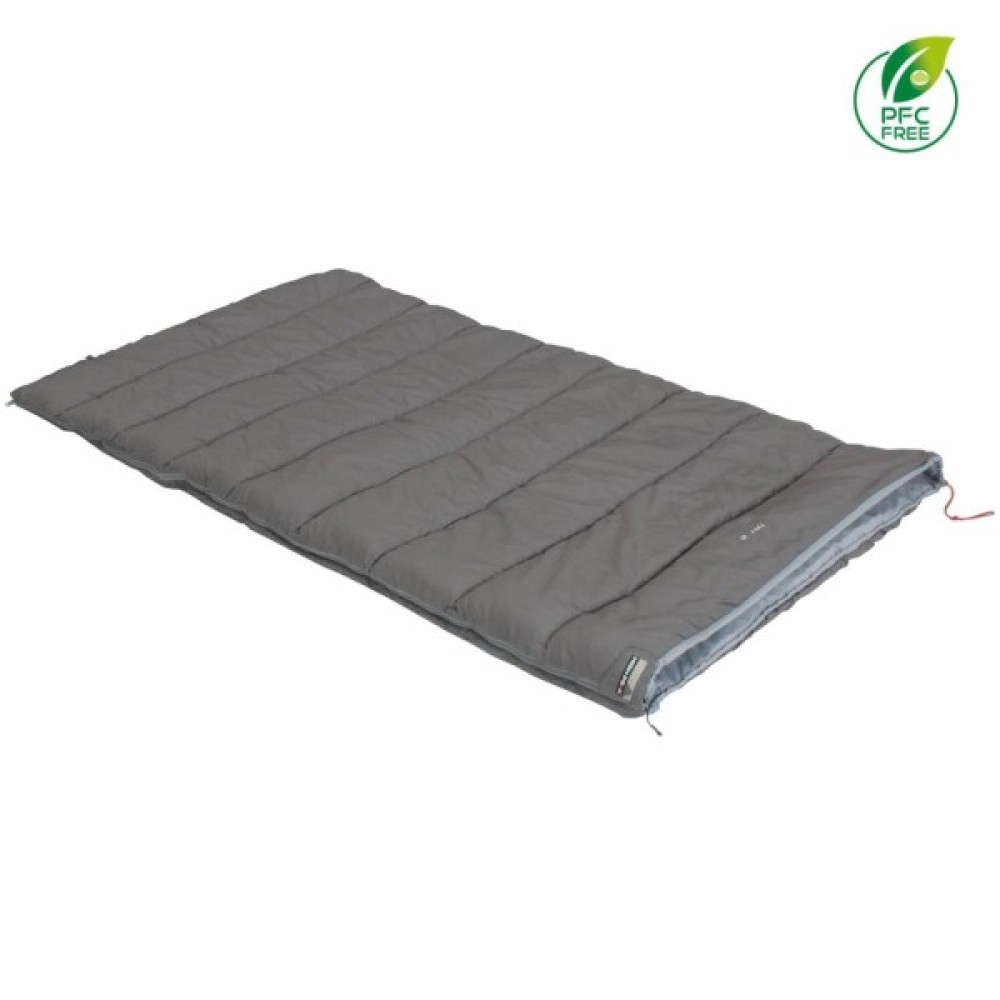 High Peak Tay 8 - спальний мішок, виконаний у формі ковдри з компресійним чохлом в комплекті. Зовнішня оболонка і внутрішня підкладка виконані з надтонкої тканини, що складається з 65% поліестеру і 35% бавовни, і не містить PFC-з'єднань. Спальний мішок має високоякісний наповнювач Dura Loft® з чудовими ізоляційними властивостями. Матеріал Dura Loft® легко стискається, довговічний, зберігає тепло навіть у вологих умовах, швидко сохне. Спальний мішок High Peak Tay 8 оснащений внутрішньою кишенею для зберігання цінних речей і довгою двосторонньою блискавкою з автоблокуванням, яка запобігає його відкриттю під час сну. Застібка має ергономічну форму для зручного хвата рукою. Спальний мішок ідеально підходить для кемпінгу.
