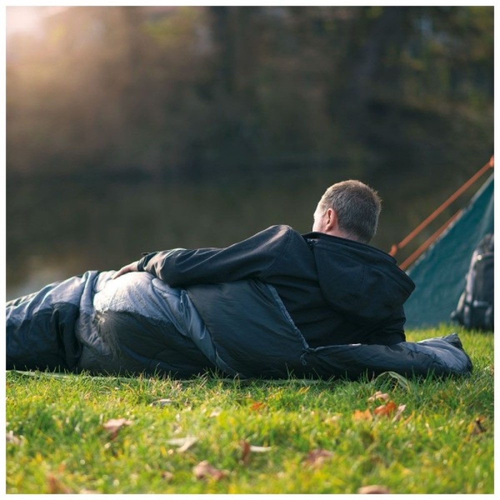 Зовнішній шар виконаний з поліестеру 190T, що робить його міцним та стійкішим до впливу ультрафіолету. Матеріал має водовідштовхувальні та вітронепроникні властивості. Спальний мішок наповнений зносостійким синтетичним утеплювачем з мікрофібри 250 г/м², який гарантує хорошу теплоізоляцію та температуру комфорту 11 °C, температура екстриму становить -7 °C. Має анатомічну форму та регуляцію капюшона на шнурках. Прекрасно підійде для літніх походів по Карпатах, хайкінгу та для міжсезонних подорожей. Форма кокона сприяє кращому збереженню тепла, має меншу вагу та розмір у чохлі, завдяки своїй конструкції є більш компактним і краще зберігає тепло. Спальний мішок має комфортну на дотик внутрішню підкладку.