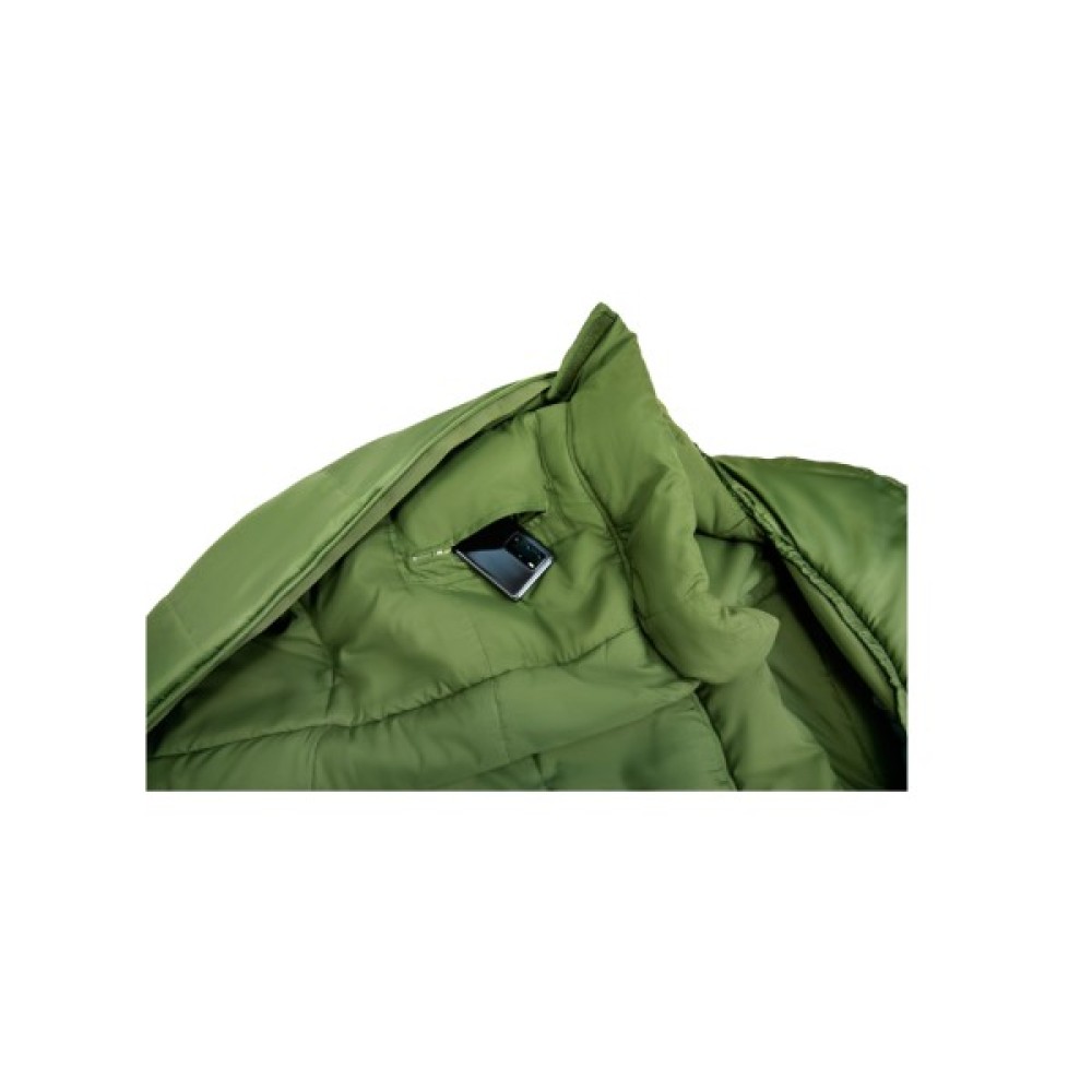 Капюшон втягується та регулюється шнурами з фіксатором. Додатково передбачений зсередини комір, що утеплює, в районі шиї. Має внутрішню кишеню для документів. Удосконалена система фронтальної блискавки дозволяє вилазити зі спального мішка за кілька секунд. Упаковується в індивідуальну компресійну упаковку.