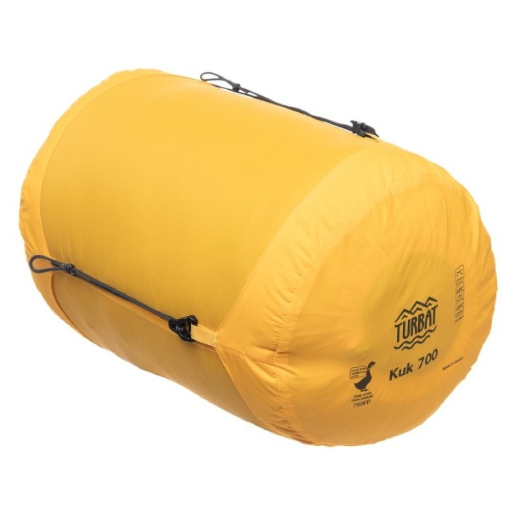 Найтепліша модель пухових спальників від Turbat спеціально розроблена для використання в умовах низьких температур. Спальник Kuk 700 - це відмінне поєднання для забезпечення максимального комфорту при мінімальному об'ємі та вазі. Хороші термоізоляційні властивості досягаються завдяки натуральному матеріалу наповнювача - українському гусячому пуху високого класу. Такий наповнювач перевершує усі синтетичні аналоги за показниками теплоізоляції на одиницю ваги. Ідеальний вибір для зимових походів та сходжень, експедицій чи скітурів. Чудово компресується у зручний мішок.