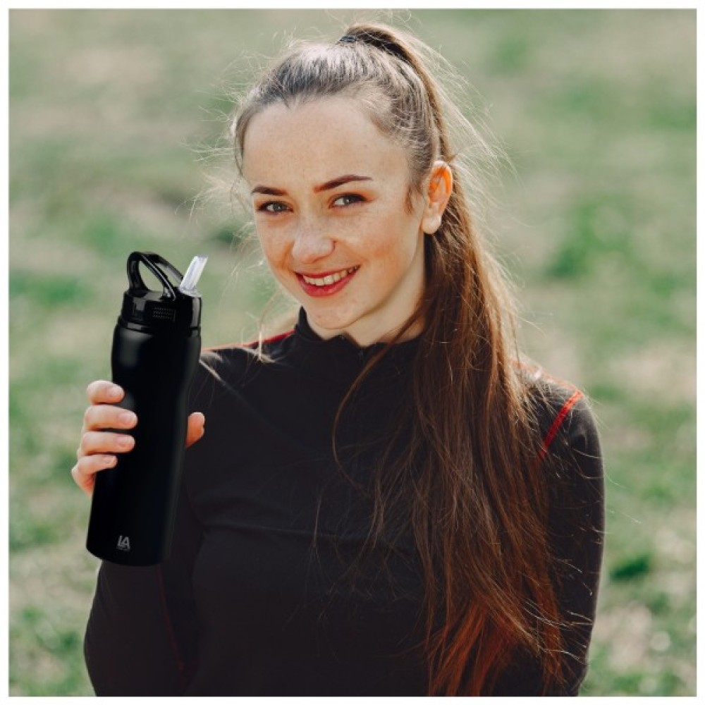 М'яка на дотик поверхня софт-тач та ергономічна форма пляшки роблять її використання неймовірно приємним. Сама пляшка зроблена з нержавіючої сталі 304, а в пластиковій кришці передбачений спеціальний отвір для пиття, так що пити з неї можна не тільки на ходу, а й на бігу. Нержавіюча сталь – найкращий матеріал для харчового посуду, вона не взаємодіє з рідинами і не виділяє шкідливих речовин. Виріб не іржавіє, не окислюється і легко миється.
