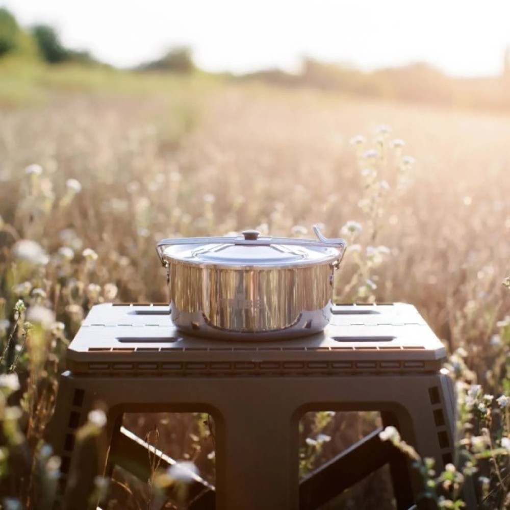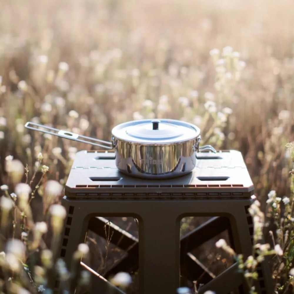 Tribe Tourist Pot об’ємом 0,9 л – компактний індивідуальний казанок із харчової нержавійки SUS 304, ідеальний для соло-похідника чи мінімалістичного комплекту кухні: товсті стінки рівномірно розподіляють тепло як на відкритому полум’ї, так і на газовому пальнику або домашній плиті, а складна фіксована ручка працює одночасно захватом і замком для кришки під час транспортування. Завдяки вазі 280 г і діаметру лише 14 см посуд не займає багато місця в рюкзаку та вміщується всередину більшості туристичних пальників або кружок.