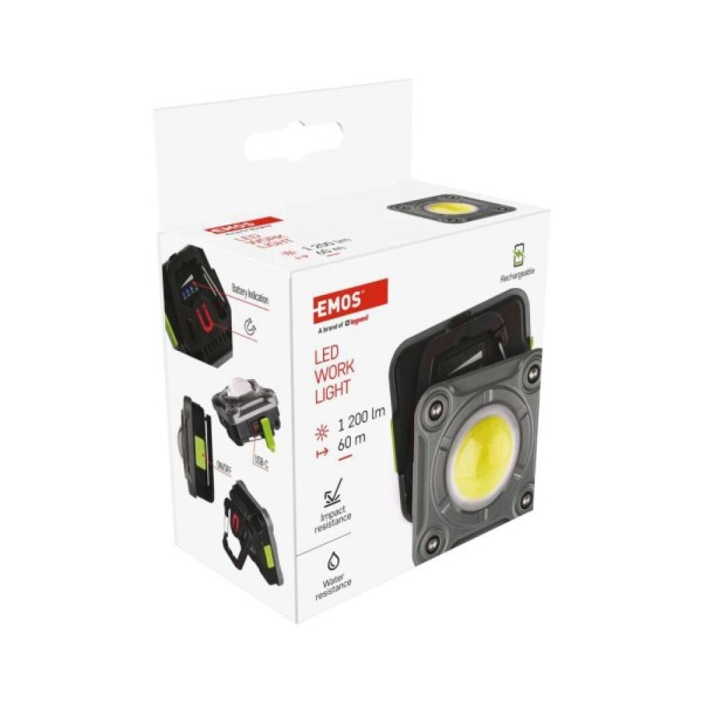 Ліхтар EMOS P4543 — це ваш надійний супутник у світі освітлення, створений, щоб забезпечити максимальну потужність та портативність у зручному форматі. Завдяки COB LED технології, цей кемпінговий ліхтар вражає своїм яскравим світлом і ефективністю. З максимальною яскравістю до 1200 люмен та дальністю освітлення до 60 метрів, EMOS P4543 стає ідеальним інструментом для тих, хто цінує якісне освітлення в темряві.