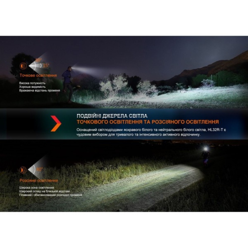 Fenix HL32R-T пропонує 7 режимів роботи, включаючи максимальний, середній, мінімальний, ближнє та дальнє світло, а також SOS. Вони діляться на дві групи: для дальнього освітлення та для ближнього, що включає миготливий сигнал. Завдяки цифровому регулюванню струму, ви отримуєте стабільне та надійне освітлення у будь-якому режимі.