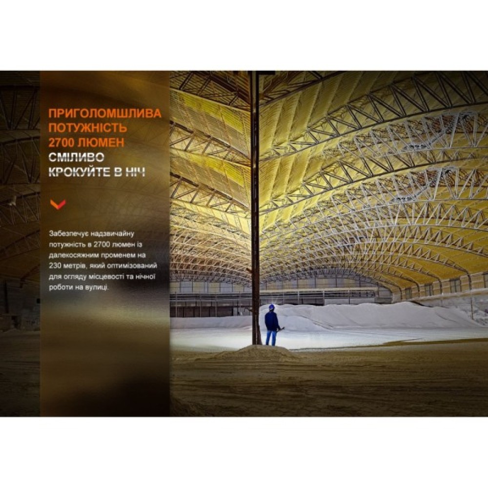 Цей ліхтар працює від літій-іонного акумулятора форм-фактора 21700 з ємністю 5000 мАг, що забезпечує тривалу автономну роботу. Завдяки підтримці заряджання через USB Type-C, відновити його енергію можна швидко і зручно. Інноваційний індикатор зарядженості, вбудований в перемикач, дозволяє відслідковувати рівень заряду в реальному часі.