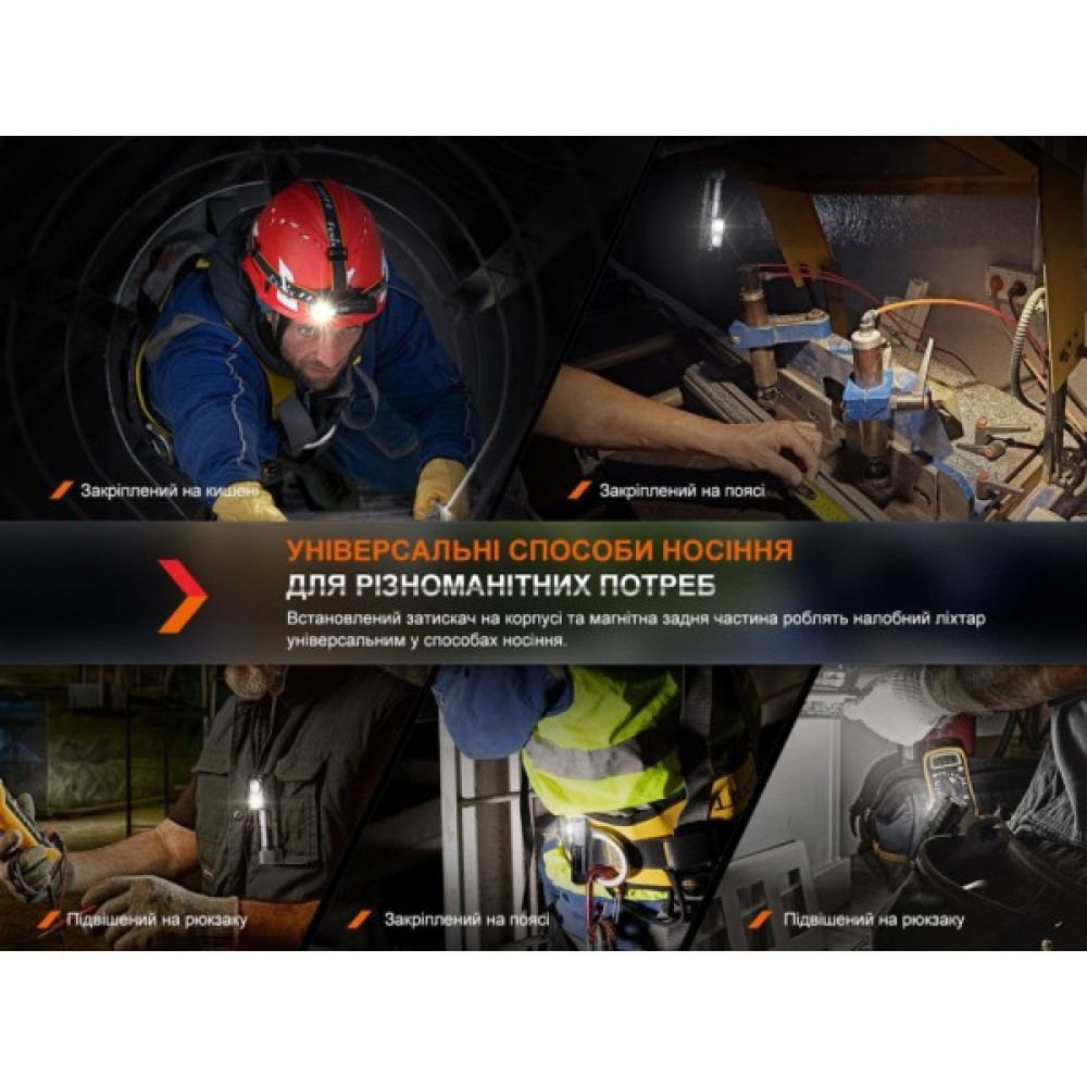 Конструкція налобного кріплення дозволяє швидко і надійно закріпити ліхтар на голові, перетворюючи його на портативне світло. Особливий механізм кріплення не тільки покращує зручність користування, але й знижує вагу конструкції до 207.5 г. Магніт на підставі корпусу дозволяє зручно фіксувати ліхтар на металевих поверхнях.