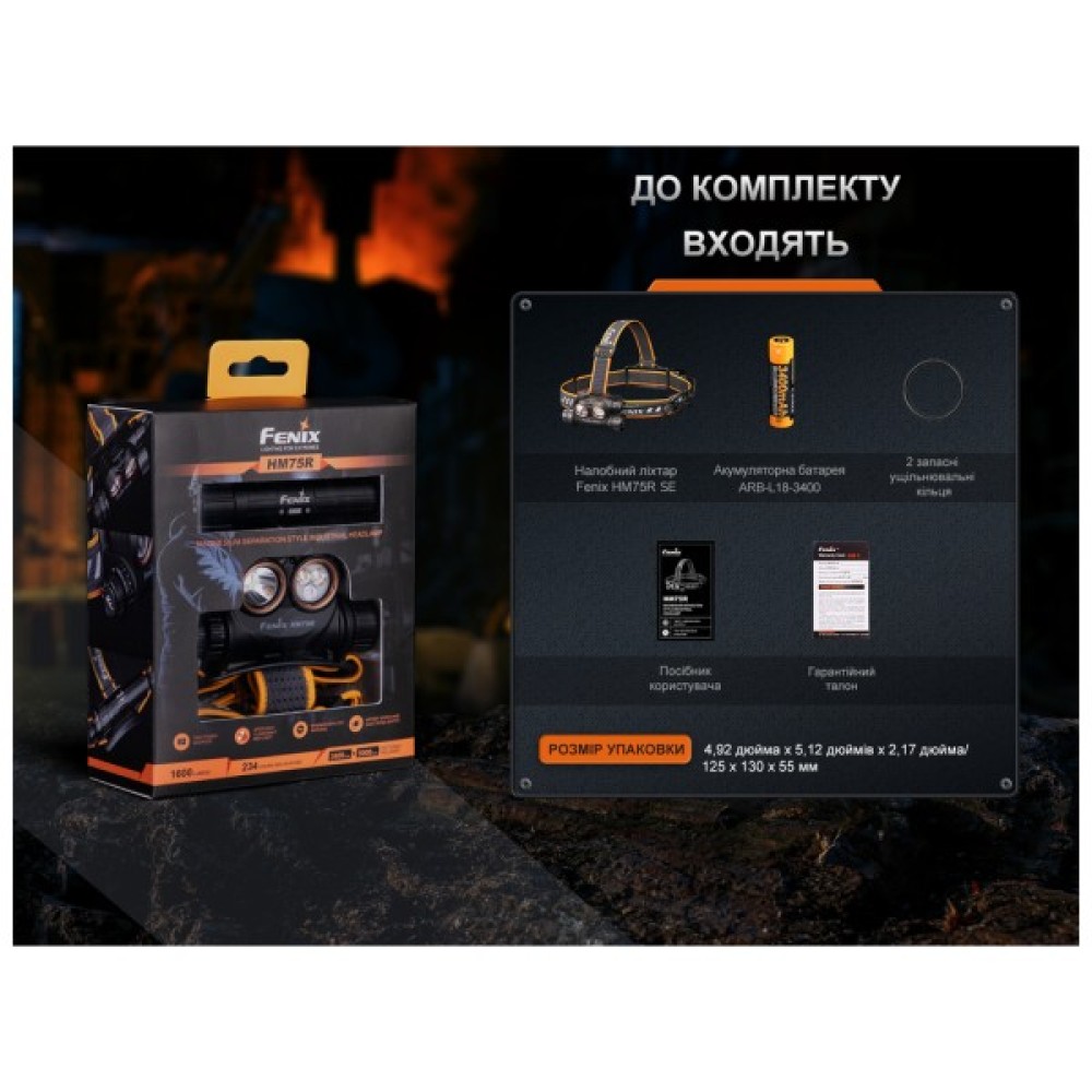 Модель Fenix ​​HM75R SE оснащена чотирма світлодіодами: один потужний Luminus SST40 (6500K) для наддалекого освітлення, два універсальних Luminus SST20 (4000K) та один спеціалізований OSRAM GR QSSPA1.23, що випромінює червоне світло. Ця різноманітність дозволяє користувачам обирати найкращий режим для будь-якої ситуації, забезпечуючи дальність світлового потоку до 223 метрів при яскравості 1600 люмен.