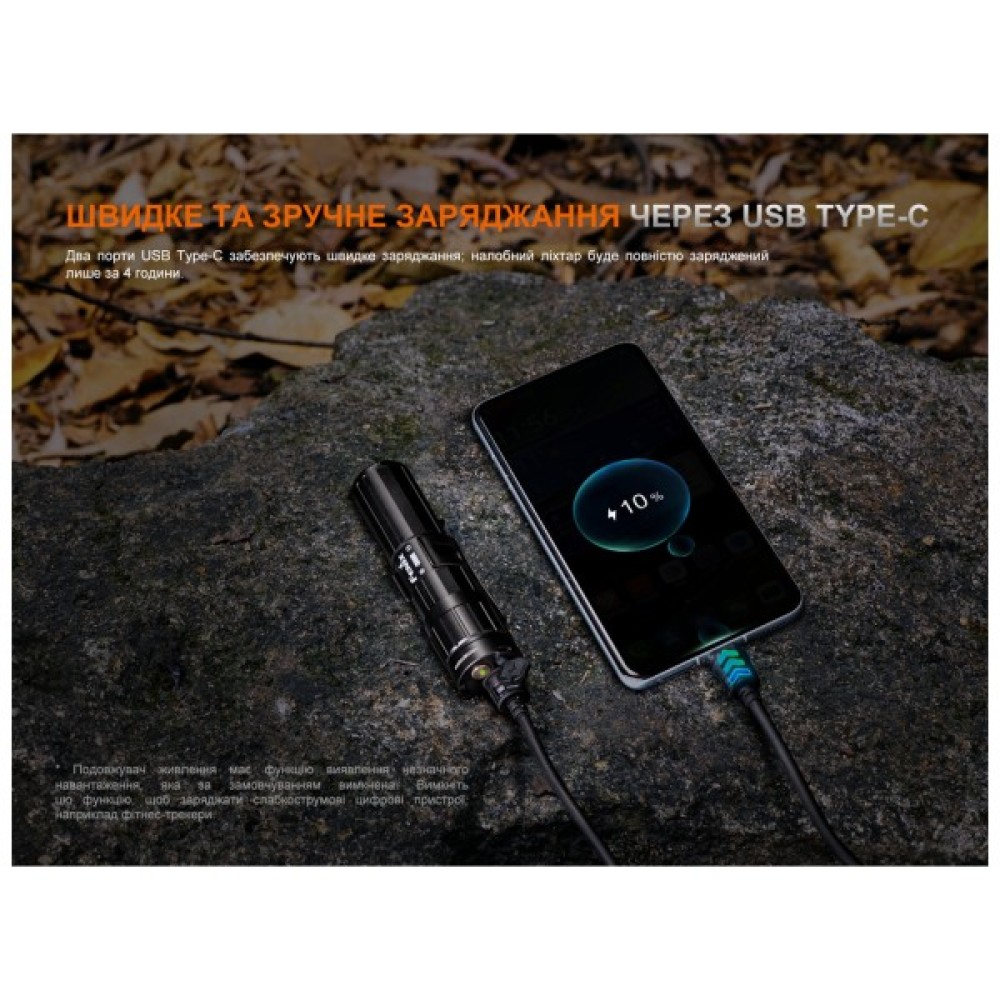 Живлення ліхтаря здійснюється від надійного Li-Ion акумулятора, який можна легко зарядити за допомогою USB Type-C, що робить процес зарядки швидким і зручним. Кількість режимів яскравості вражає - їх цілих 12! Включаючи турбо, стробоскоп, різні середні та мінімальні режими, а також спеціальний режим червоного світла, цей ліхтар надає свободу вибору та можливість адаптуватись до будь-яких умов.