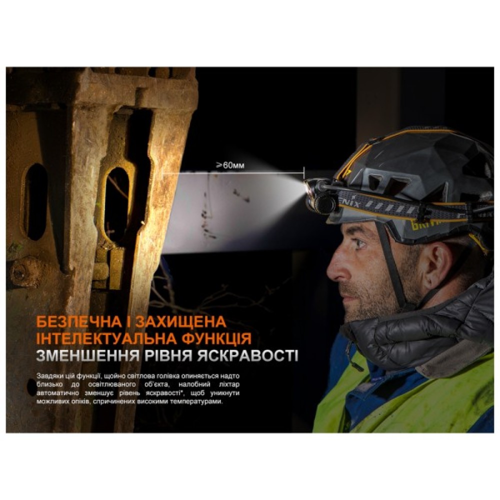 Основною перевагою Fenix ​​HM75R SE є захист від перегрівання, що запобігає перегріву в разі використання на максимальній потужності. Система миттєвого зниження яскравості активується при наближенні ліхтаря до об'єктів ближче ніж на 60 мм, що запобігає можливим аваріям або негативному впливу на зір.