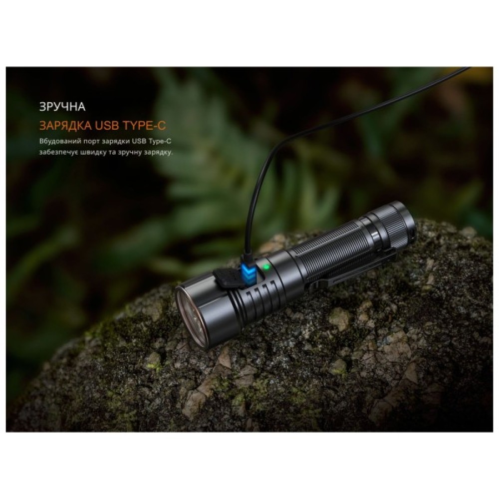 Ліхтар живиться від акумулятора ARB-L21-6000, який забезпечує до 65 годин автономної роботи. Швидке заряджання від вологозахищеного порту USB-C займає лише 3,5 години. Кольоровий індикатор під зарядним портом повідомляє про поточний рівень заряду батареї, що дозволяє контролювати процес зарядки.