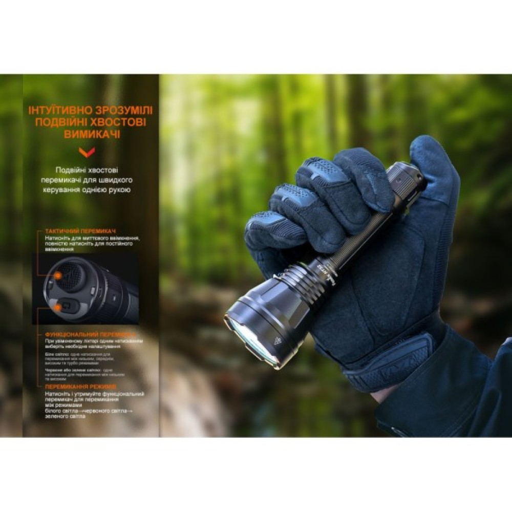 Основною перевагою Fenix HT32 є його унікальні функції. Окрім звичайного ручного використання, ліхтар можна легко закріпити на зброю за допомогою фірмових кріплень, доступних окремо. Для зручності управління передбачені дві тактичні перемикачі на хвості корпусу, що дозволяють швидко змінювати режими. Велика кругла кнопка дає змогу миттєво активувати світло, а функціональна овальна кнопка — перемикати групи режимів та рівні яскравості.