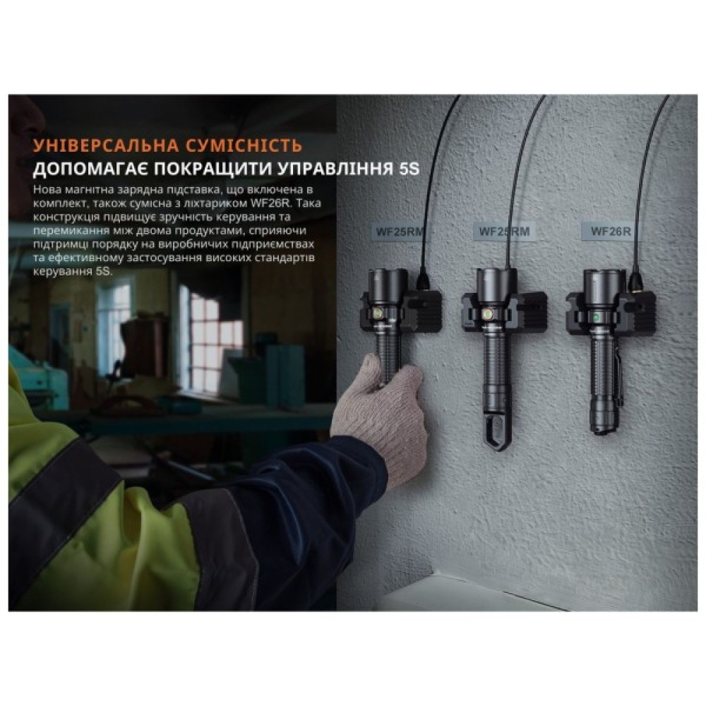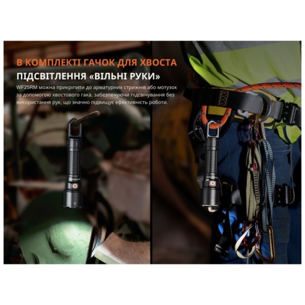 Особливістю цього ліхтаря є магнітний гак для підвіски, що додає зручності при фіксації пристрою в різних умовах. Це дозволяє звільнити руки, природно інтегруючи Fenix WF25RM у ваше щоденне життя.