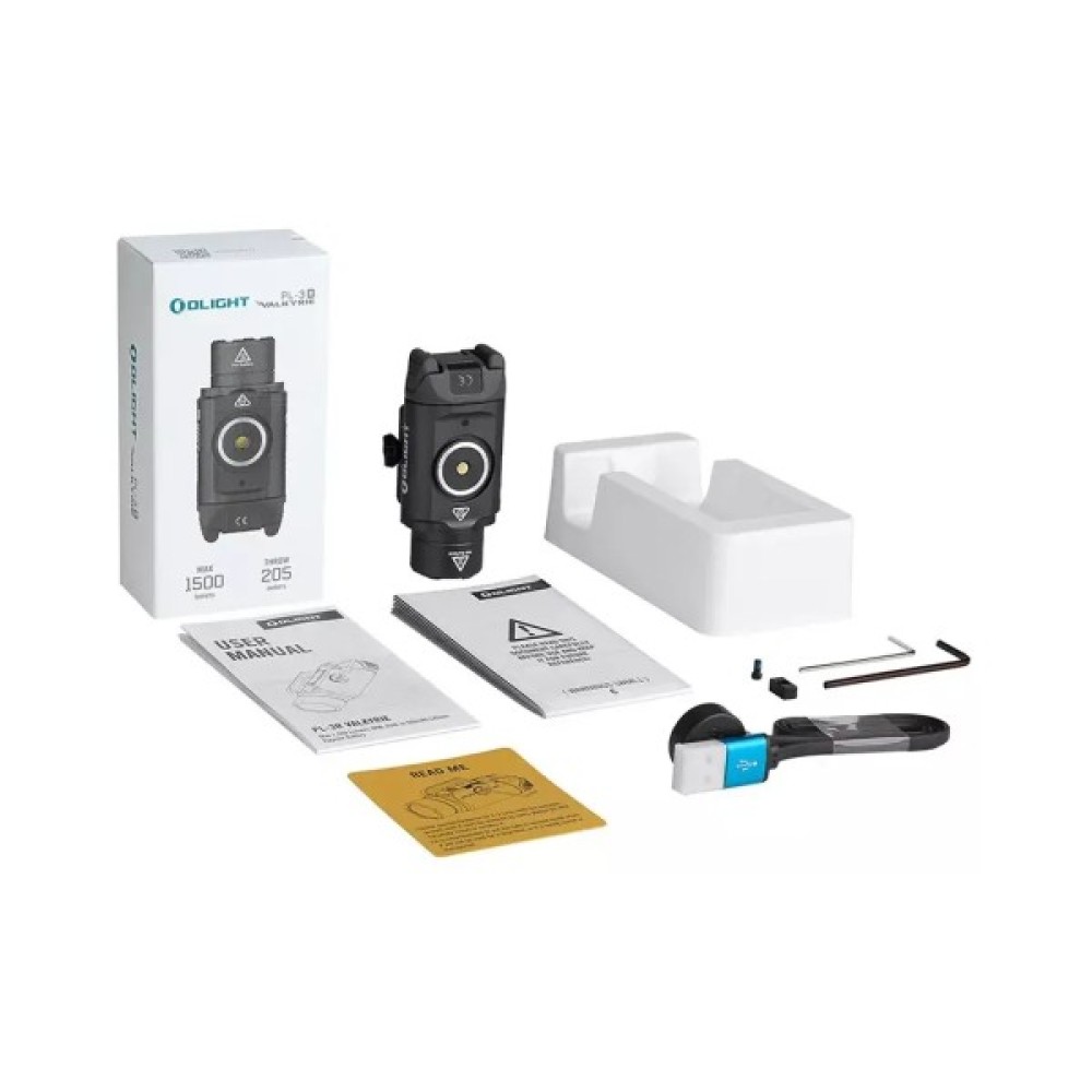 Olight PL-3R Valkyrie - це оновлена версія популярної моделі PL-3 Valkyrie, яка має більшу максимальну потужність 1500 люмен від високоефективного білого світлодіода і тепер може перезаряджатися. Він призначений для пістолетів з планками типу «пікантіні» або «глок» і поставляється з двома адаптерами для кріплення (1913 і GL), що робить його сумісним з широким спектром пістолетів. Також є регульований розсувний блок з трьома положеннями для гнучкого позиціонування на різних типах планок.