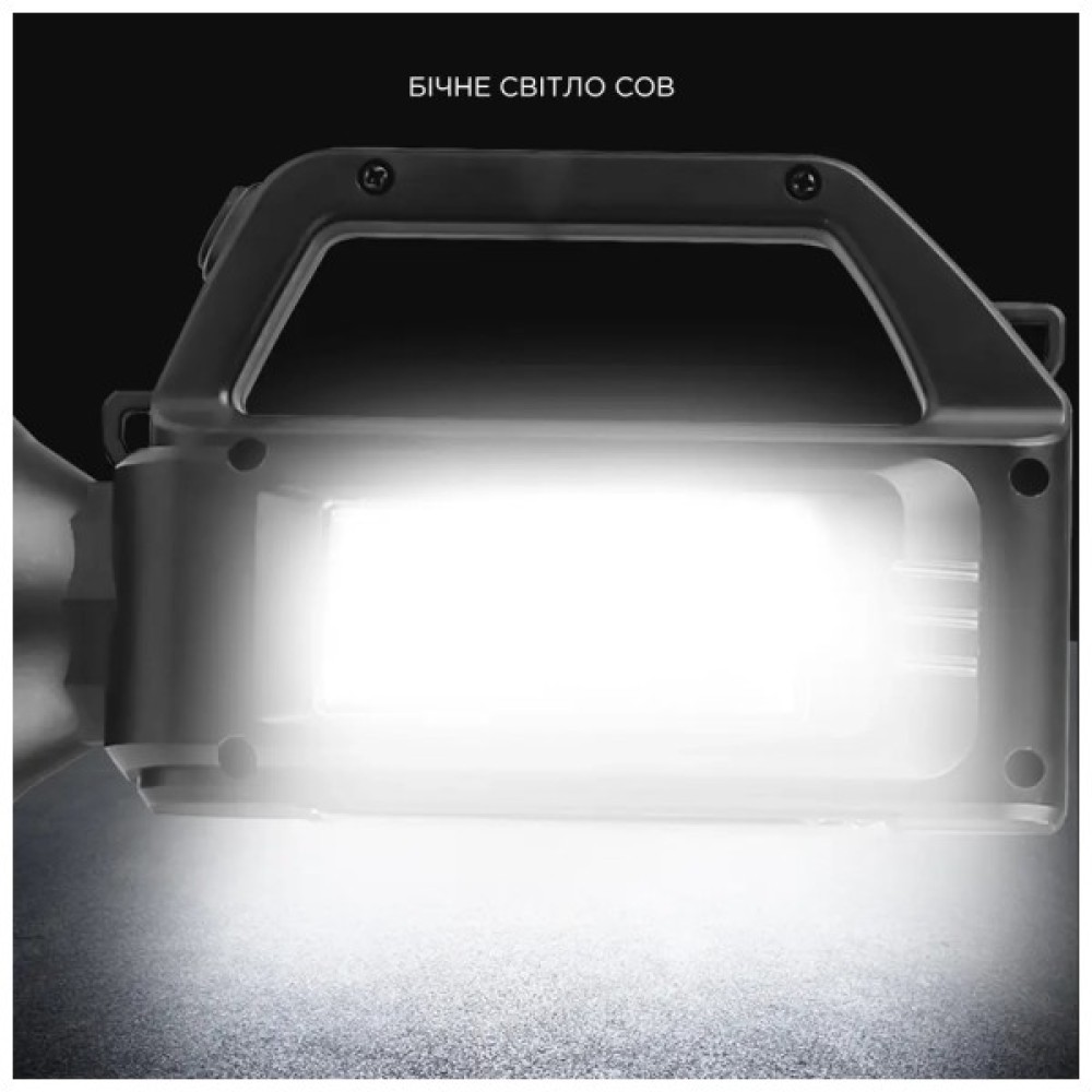 Оснащений одним LED і одним COB світлодіодом, ліхтар забезпечує високу яскравість до 300 люмен і довговічність завдяки надійному ABS пластику. П'ять різних режимів освітлення дозволяють підібрати оптимальний режим для будь-якої ситуації: максимальне та мінімальне пошукове LED світло, миготливе світло, а також біле та червоне бічне COB світло. Ви легко зможете змінювати режими натисканням кнопки на передній частині ручки.