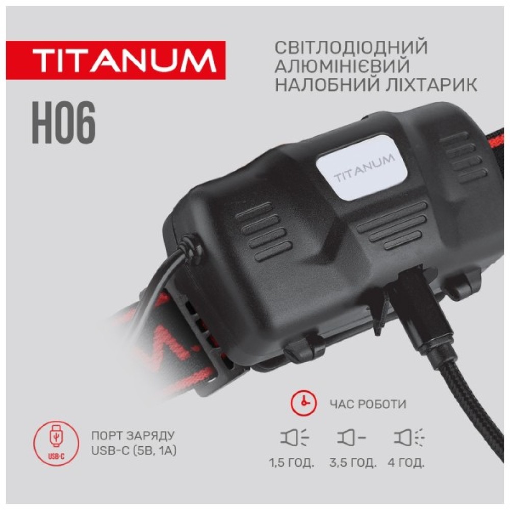 Ліхтар TITANUM 800Lm 6500K (TLF-H06) — ваш надійний супутник в умовах обмеженої видимості, який поєднує в собі передові технології освітлення та елегантний дизайн. Цей налобний акумуляторний світлодіодний ліхтар підійде для вечірніх прогулянок, риболовлі, домашніх або професійних завдань, завдяки своїй високій потужності та зручності у використанні.