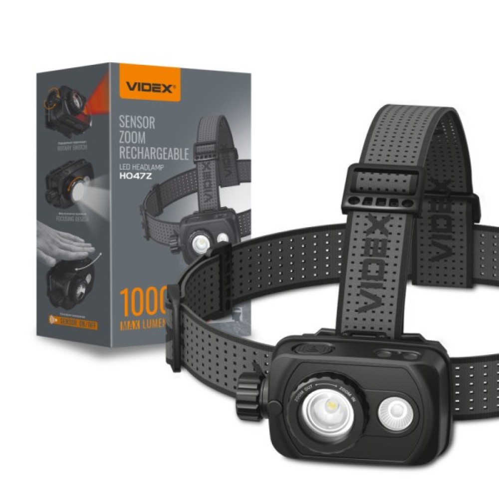 Налобний світлодіодний ліхтарик VIDEX VLF-H047Z 1000Lm 5000K. Має біле та червоне світло. Завдяки наявності 8 режимів, функції фокусування променя, класу захисту від пилу та вологи (IP65), класу захисту від падіння до 1м та можливості регулювати кут нахилу він має велику кількість сценаріїв для використання.