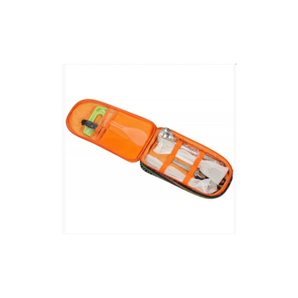 Набір кухонного приладдя Skif Outdoor Chief's Vocation - багатофункціональна новинка від Skif Outdoor. Перше, що кидається в очі - це яскравий дизайн чохла з етно орнаментом. Усередині ви знайдете повноцінний набір для приготування супів, для смаження м'яса, нарізки овочів і тд. Кожен предмет набору розміщений в індивідуальному відсіку. Комплект Chief's Vocation стане хорошим помічником на рибалці, на пікніку або навіть вдома.