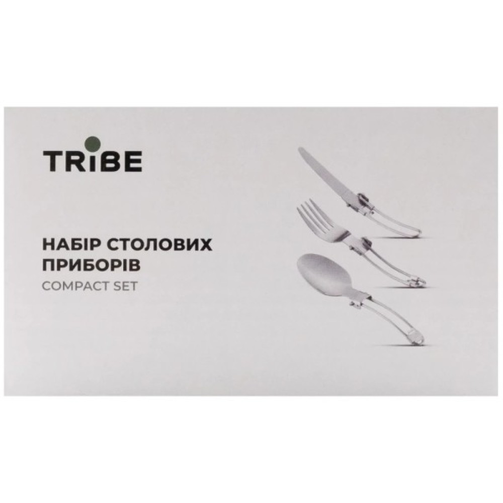 Tribe Compact Set - набір столових приборів виготовлено з нержавіючої харчової сталі. У комплекті 3 прибори - виделка, ложка та ніж. Набір компактно складається у чохол.