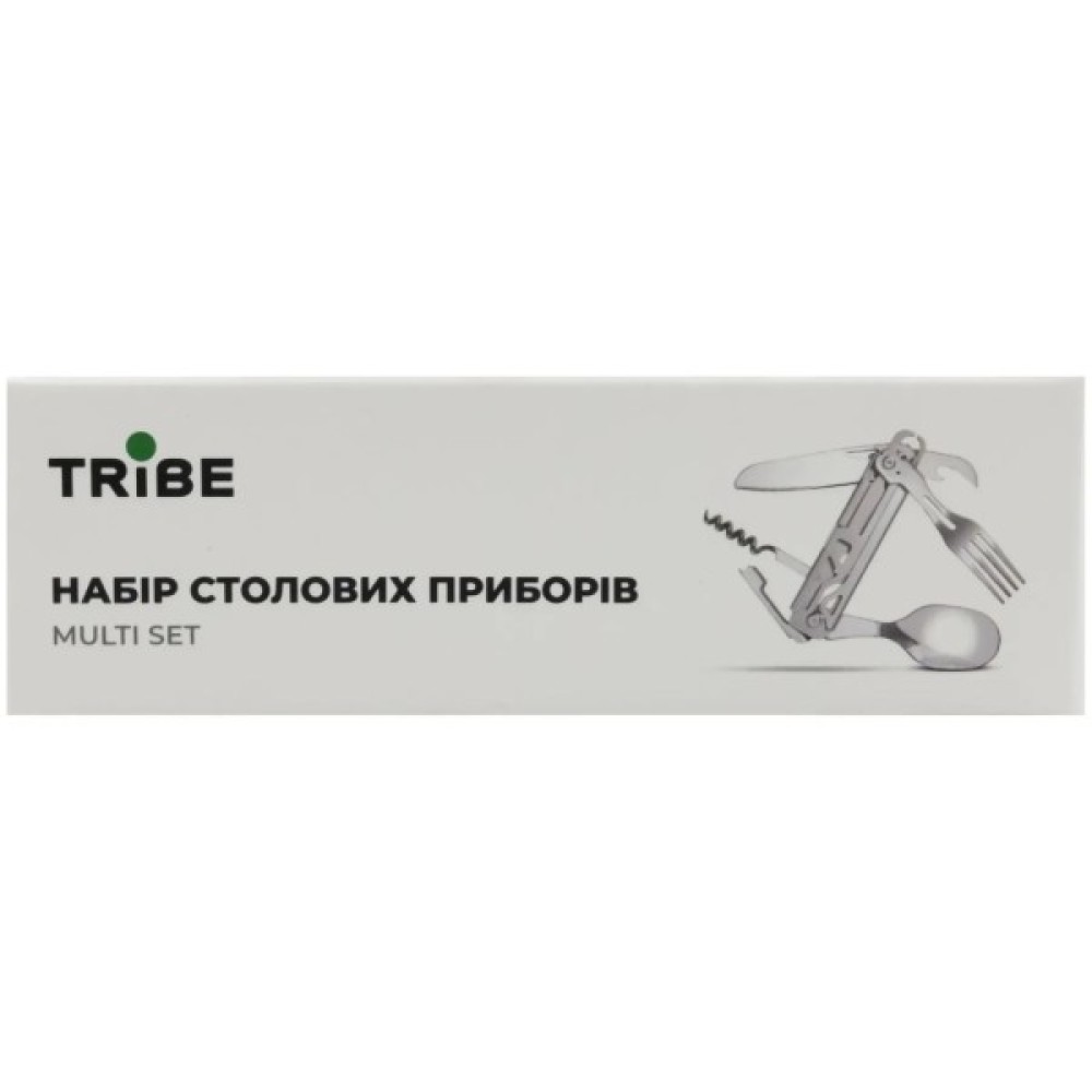 Tribe Multi Set - набір столових приборів для кемпінгу та відпочинку на природі, виготовлений з нержавіючої харчової сталі. Компактно складається, виделка відокремлюється від інших приборів.