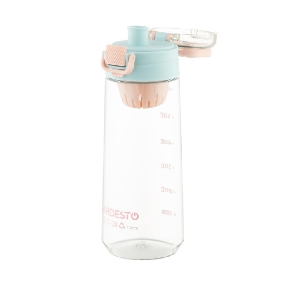 Пляшка для води ARDESTO Duo об’ємом 720 мл — це ідеальний вибір для тих, хто цінує натуральні смаки та здоровий спосіб життя. Завдяки вбудованому відсіку для фруктів, ви легко приготуєте фруктову воду, додавши лимон, ягоди чи м’яту — освіжаючий напій завжди під рукою.