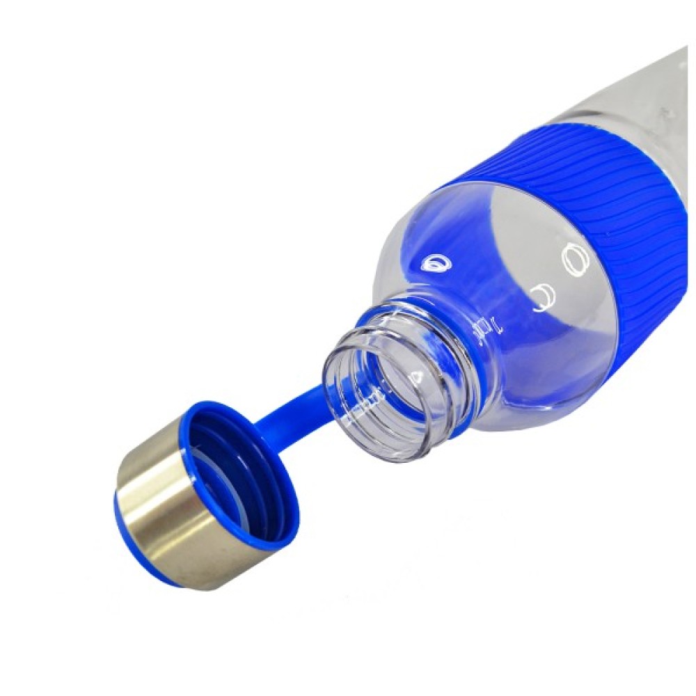 Пляшка для води Limpid виготовлена з тритану. Це інноваційний і зовсім нешкідливий для людей матеріал, з якого роблять харчовий посуд. Тритан ударостійкій, схожий на скло. Про нього кажуть, що це скло, яке не б’ється. Тританова пляшка має ергономічну форму й достатній об’єм – 850 мл. Щоб її було зручно тримати в руках, виробники обладнали колбу силіконовим рельєфним рукавом синього кольору. Пляшка щільно закривається гвинтовою кришкою з контрольним кільцем. Має компактні розміри, її висота – 25.1 см, ширина – 8.2 см. Тританова пляшка для води Limpid призначена для гарячих та холодних напоїв. Її обсяг дозволить декілька годин підтримувати водний баланс організму на оптимальному рівні. Посуд з тритану можна мити в посудомийній машині.