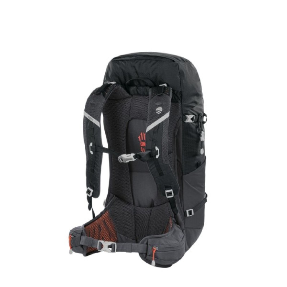 - Auxetic‑напилювач — інноваційний матеріал із негативним коефіцієнтом Пуассона, що «розширюється» під навантаженням. У плечових лямках це напилювання створює відкриту пористу структуру, яка ефективно відводить тепло й вологу від тіла, а також адаптується до контурів плечей, забезпечуючи рівномірний розподіл тиску. Це значно підвищує комфорт та зменшує втому під час тривалих походів.