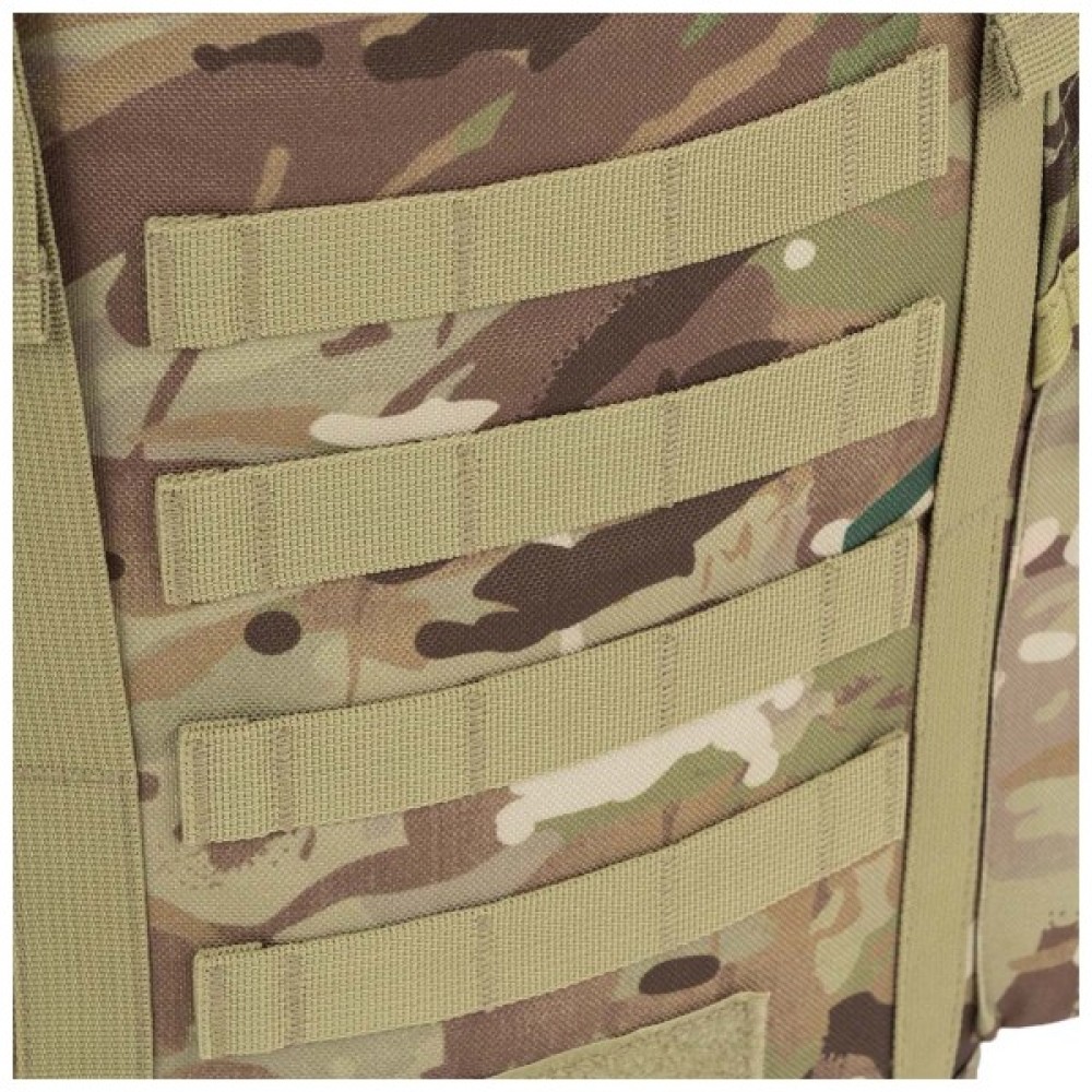 Highlander Forces Loader Rucksack 44L HMTC — надійний тактичний рюкзак, призначений для використання в найсуворіших умовах. Модель виготовлена із міцного водостійкого поліестеру 1000D XTP, має фастекси Duraflex і самовідновлювальні блискавки № 10. Все це гарантує, що даний рюкзак витримає тривалу експлуатацію. Вентильована спинка і регульований поясний ремінь розподіляють навантаження та мають м’які підкладки, щоб забезпечити Вам комфорт під час багатоденного носіння. Окрім кількох внутрішніх відділень, модель має систему кріплень MOLLE та амортизаційний шнур зверху, тож Ви можете оптимізувати рюкзак для перенесення всього необхідного спорядження під час коротких виходів.