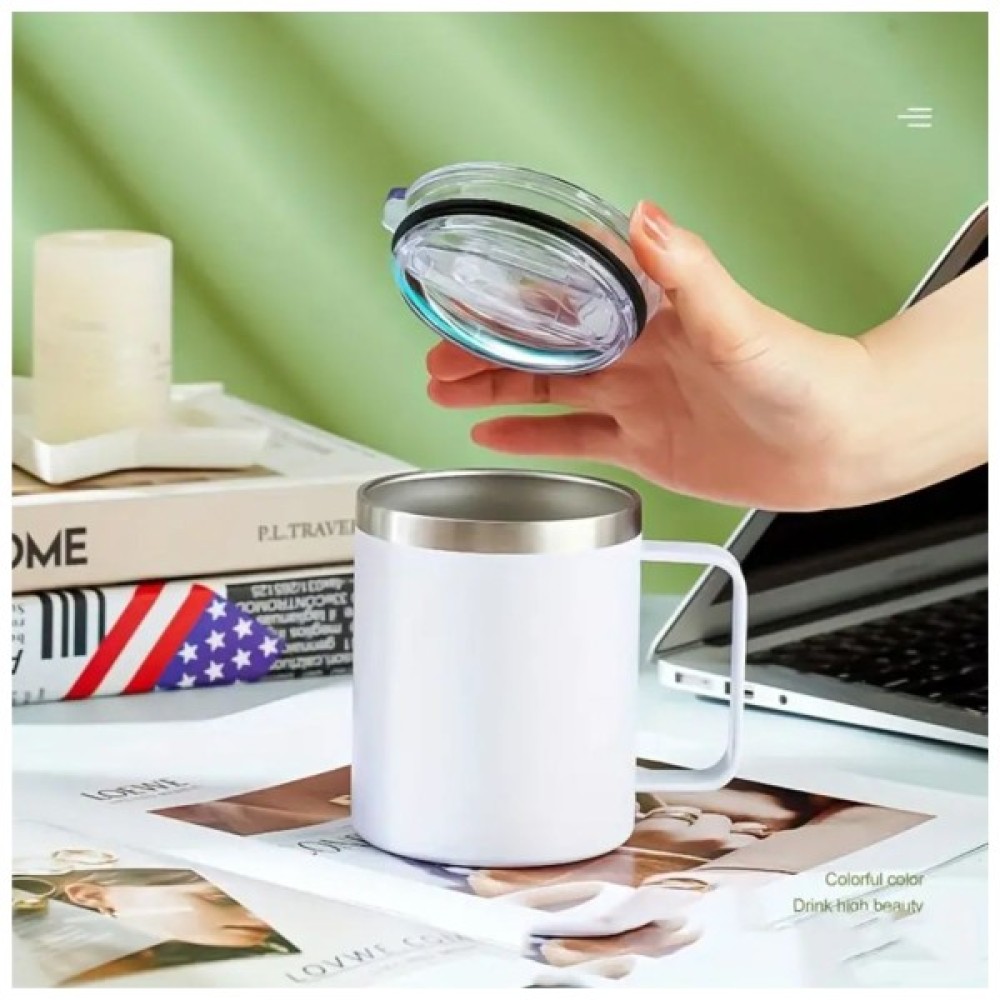 Чашка виготовлена з якісної нержавіючої сталі марки 304 з антикорозійним покриттям. Цей матеріал є одним найкращих для харчового посуду. Виріб має подвійні металеві стінки з вакуумною ізоляцією та зручну ручку.